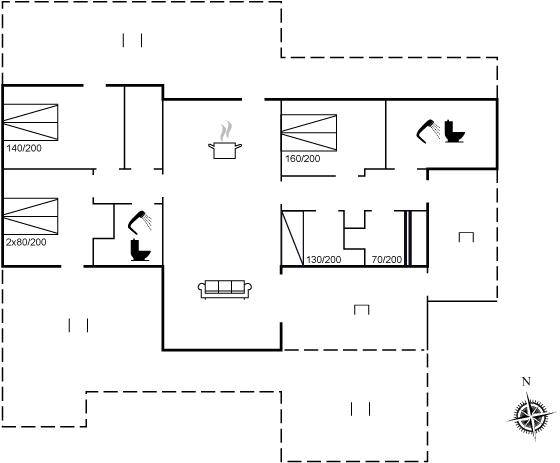 SchlafverhältnisseDie Schlafplätze verteilen sich auf 5 Schlafräume. 6 Schlafplätze in Doppelbetten.1 Schlafplatz in einem Einzelbett. 2 Schlafplätze in einem Etagenbett.