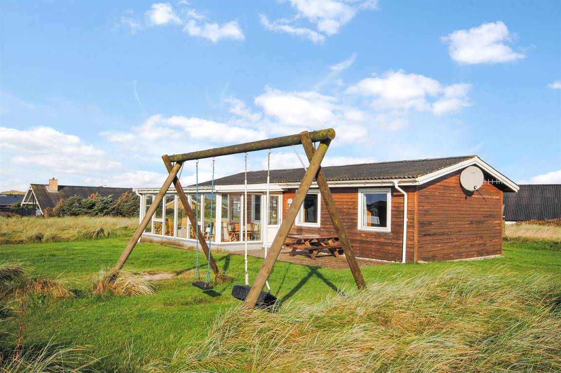 DraußenDie Ferienunterkunft liegt auf einem 1254 m² großen Dünengrundstück. Die Entfernung zum Meer beträgt 250 m. Die nächste Einkaufsmöglichkeit liegt 1000 m entfernt. Es steht ein 40 m² Terrassenareal zur Verfügung. Außerdem gibt es 15 m² überdachte Terrasse. Schaukel. Sandkasten.