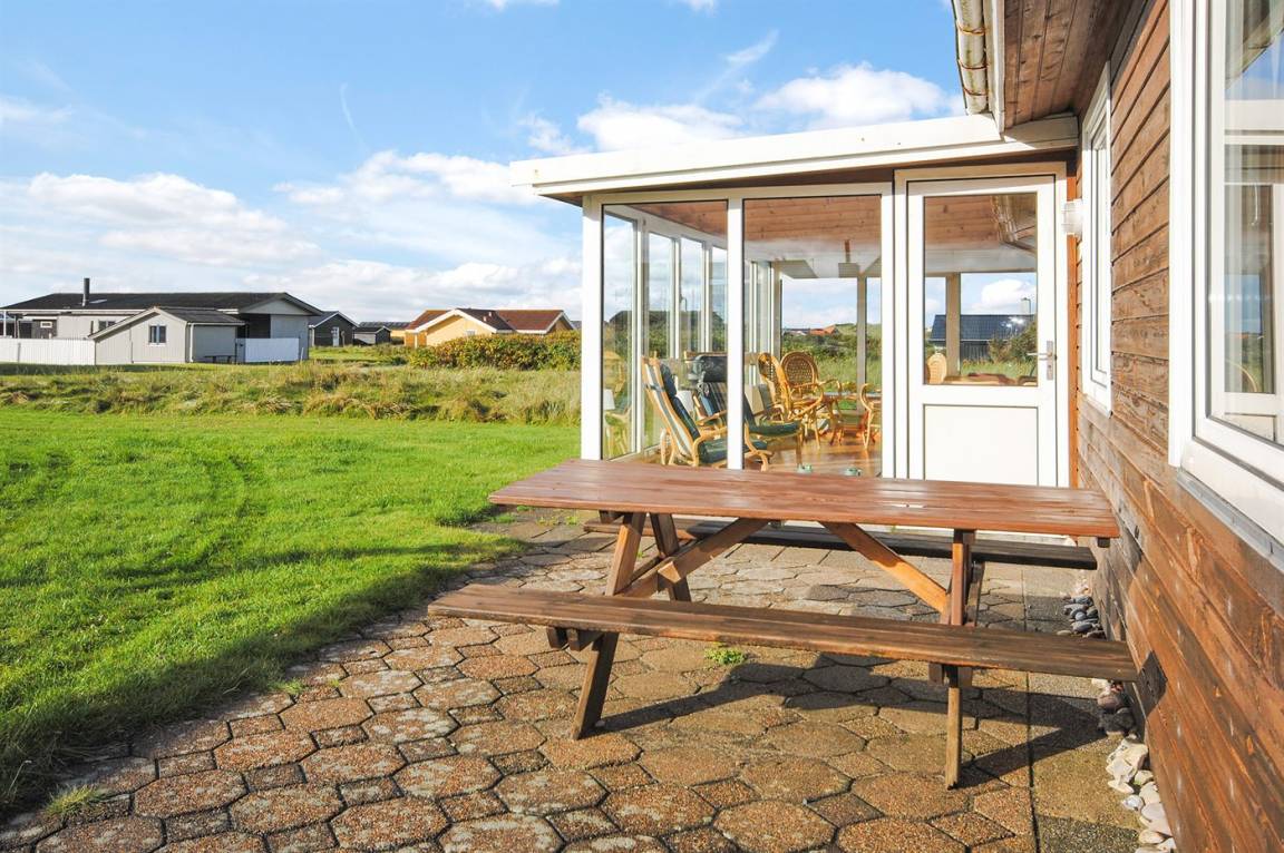 „The vacation at the holiday home: Vi savnede rigtig meget et par udendørs liggestole. The holiday home itself: Ældre, rummeligt træhus. Alligevel et meget lille køkken- dog med nye hvidevarer. Rigtig god udestue“