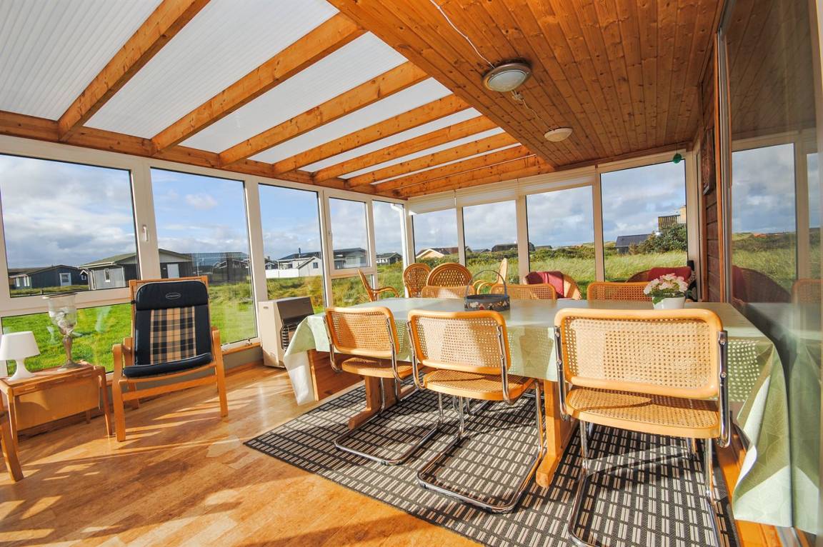 Geräumiges Ferienhaus aus Holz mit Holzvertäfelung in Kieferholz. 25 m² Wintergarten.