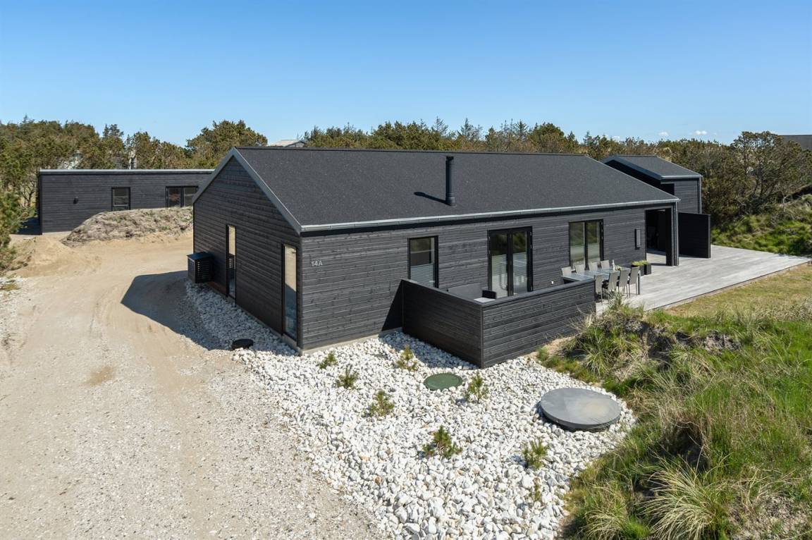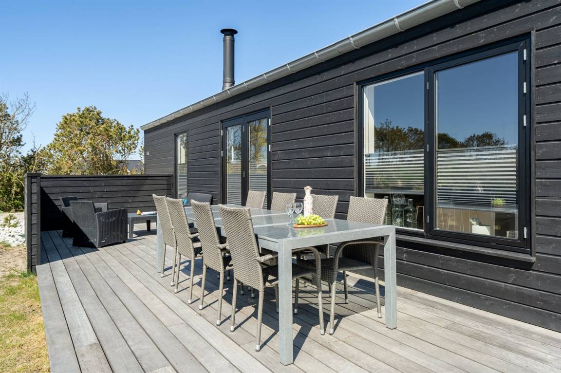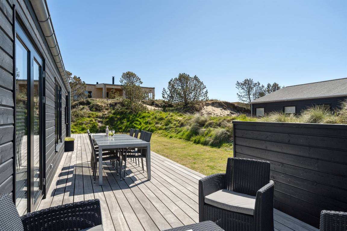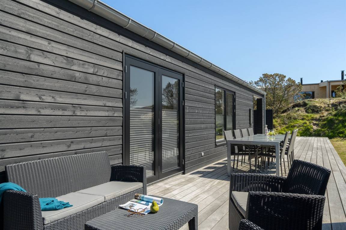 DraußenDie Ferienunterkunft liegt auf einem 1202 m² großen Dünengrundstück. Die Entfernung zum Meer beträgt 650 m. Die nächste Einkaufsmöglichkeit liegt 500 m entfernt. Es steht ein 80 m² Terrassenareal zur Verfügung. Außerdem gibt es 14 m² überdachte Terrasse. Es steht ein Grill zur Verfügung. Parkplatz auf dem Grundstück.