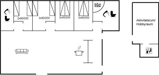 MultimedienIn der Ferienunterkunft gibt es einen Fernseher. Fernsehen via Streaming. HD-Sender können empfangen werden. Radio. Mindestens 4 dänische Fernsehsender. 1-3 schwedische Fernsehsender. 1-3 norwegische Fernsehsender. Mindestens 4 deutsche Fernsehsender. Es steht kabellose Internetverbindung zur Verfügung.