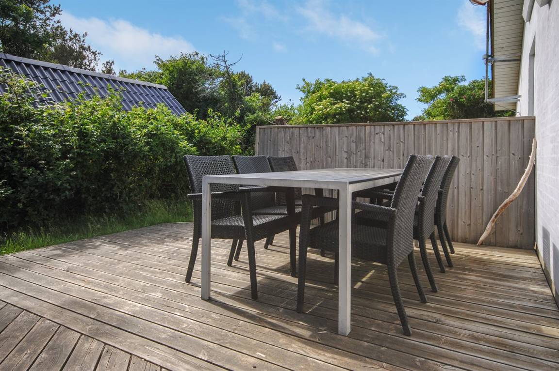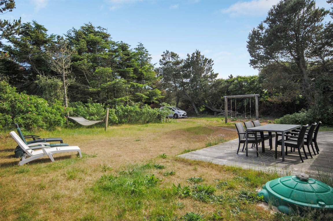 DraußenDie Ferienunterkunft liegt auf einem 1200 m² großen Gartengrundstück. Die Entfernung zum Meer beträgt 400 m. Die nächste Einkaufsmöglichkeit liegt 900 m entfernt. Es steht ein 65 m² Terrassenareal zur Verfügung. Außerdem gibt es 10 m² überdachte Terrasse. Geräteraum.