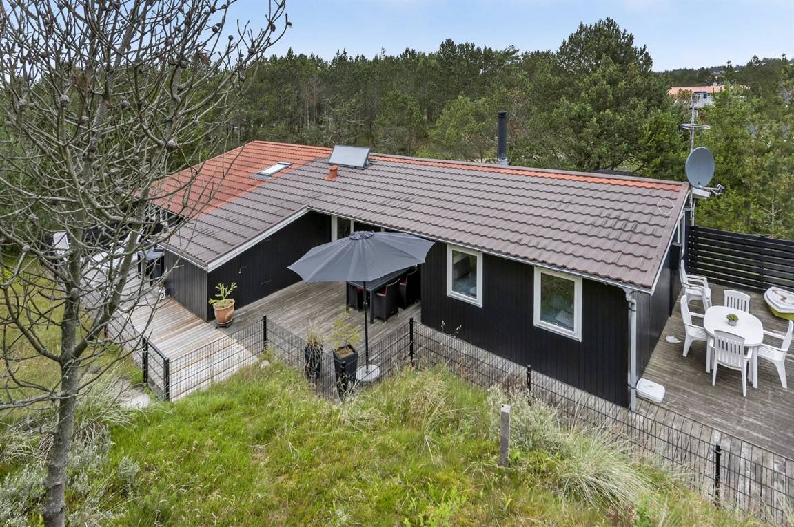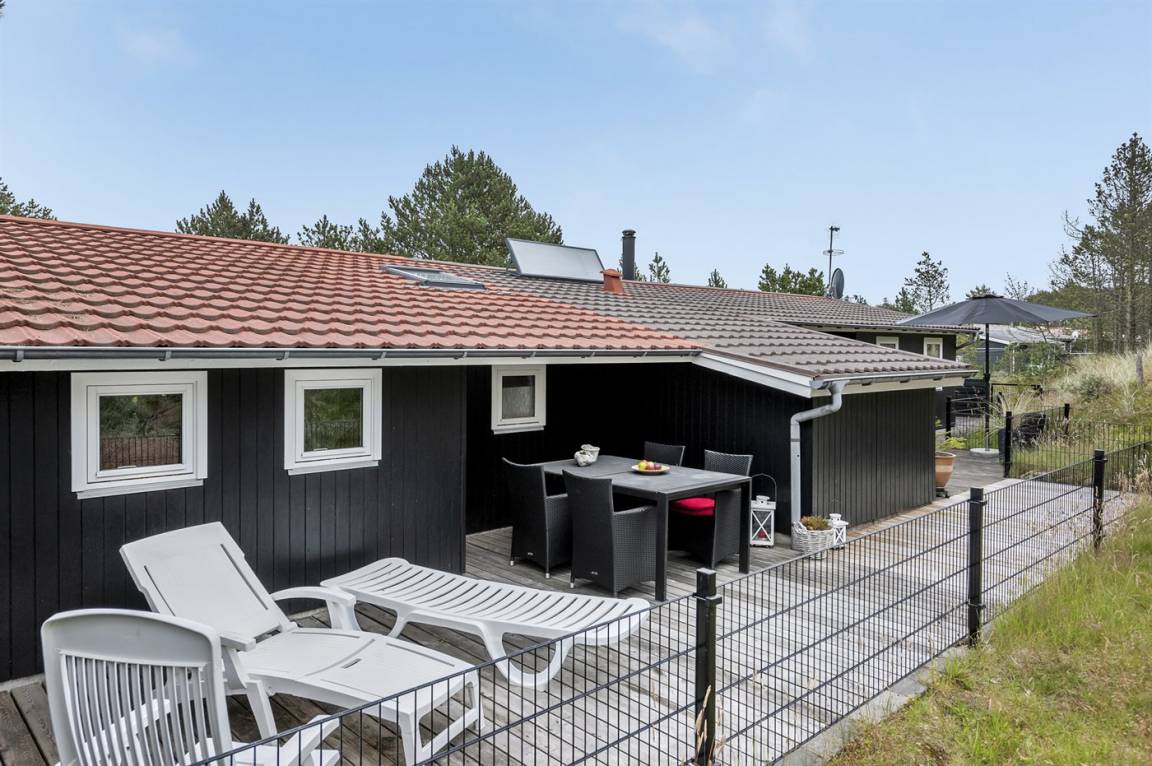 DraußenDie Ferienunterkunft liegt auf einem 1400 m² großen Dünengrundstück. Die Entfernung zum Meer beträgt 1700 m. Die nächste Einkaufsmöglichkeit liegt 1500 m entfernt. Es steht ein 61 m² Terrassenareal zur Verfügung. Außerdem gibt es 13 m² überdachte Terrasse. Davon insgesamt 74 m² geschlossene Terrasse. Geräteraum. Sandkasten. Es stehen 2 Grills zur Verfügung. (1 Kohlegrill und 1 Gasgrill). Parkplatz auf dem Grundstück.