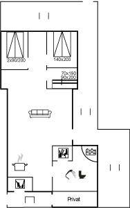 SchlafverhältnisseDie Schlafplätze verteilen sich auf 3 Schlafräume. 4 Schlafplätze in Doppelbetten. 2 Schlafplätze in einem Etagenbett.