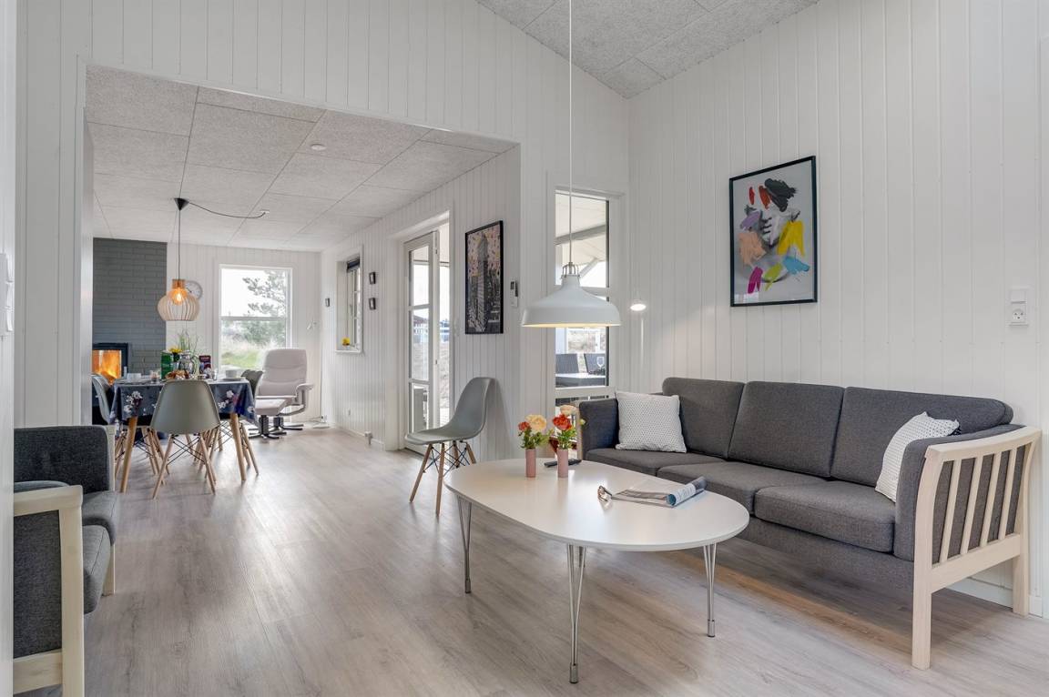 Tolles, ganz neues Ferienhaus von 2020 mit einer gemütlichen, hellen Einrichtung im skandinavischen Stil. Das Haus liegt in einer ruhigen Ferienhaussiedlung und gehört zu einer kleinen Gruppe von 5 beieinander liegenden Häusern. Zum Haus gehört ein kleines Grundstück mit schönen Terrassenbereichen und vielen geschützten Ecken.