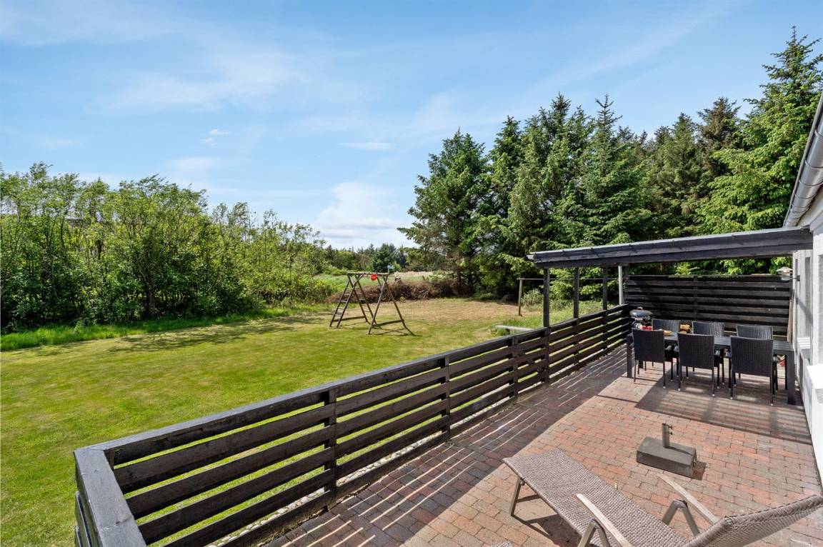 Dieses schöne und gepflegte Ferienhaus liegt in ruhiger Umgebung und im Gehabstand vom Strand in Nr. Vorupør entfernt. Zum Haus gehören mehrere schöne, vom Wind geschützte Terrassen. Das große Grundstück eignet sich ausgezeichnet für Ballspiele und andere Aktivitäten im Freien.