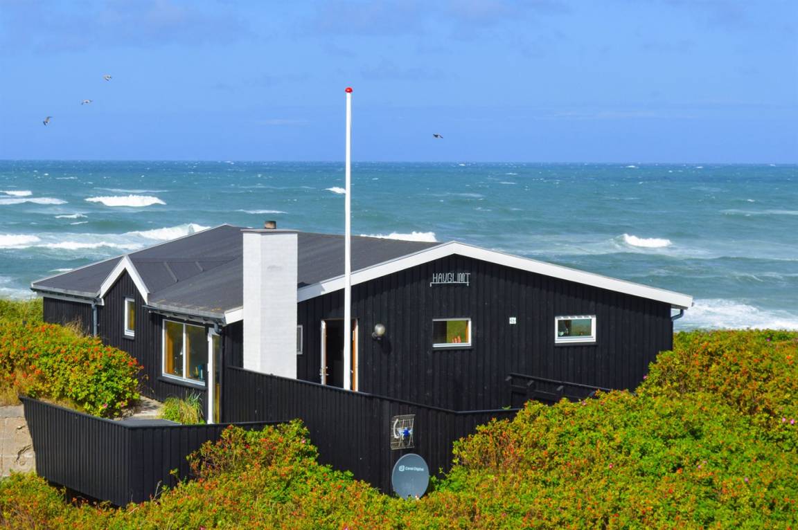 Sehr gemütliches Holzhaus mit ganz fantastischer Lage direkt am Strand. Vom Haus hat man einen wunderschönen Blick auf die Klitmøller Bucht und die Nordsee.