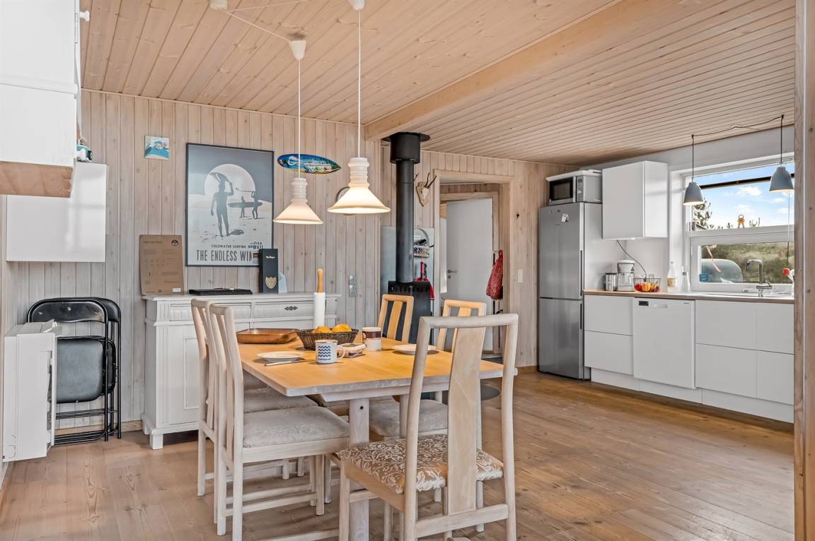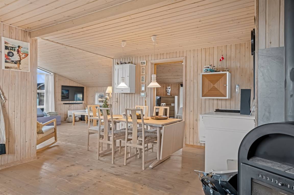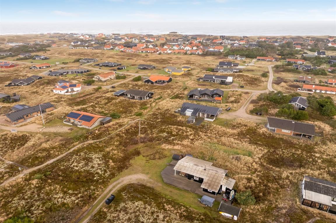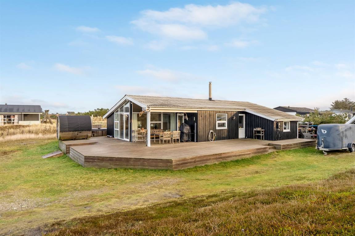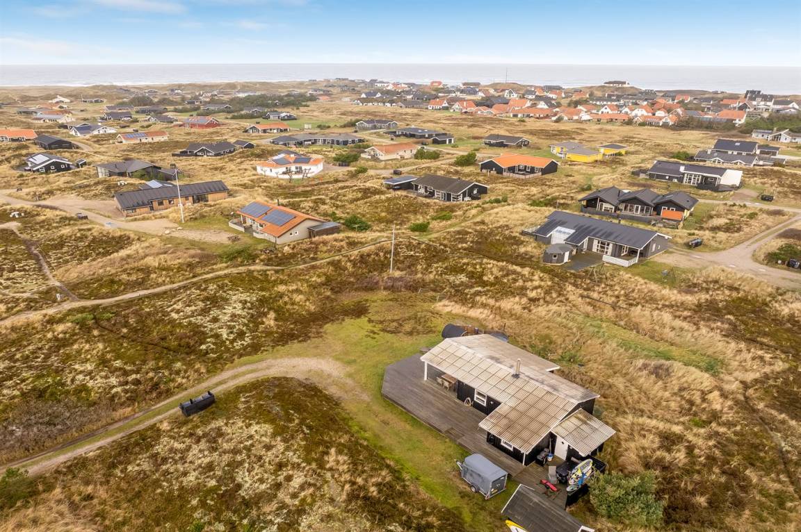 Auf einem großen Doppelgrundstück im Feriengebiet Klitmøller findest du dieses schöne Ferienhaus mit einer zentralen Lage – nicht weit vom Meer und vom Ortszentrum entfernt.