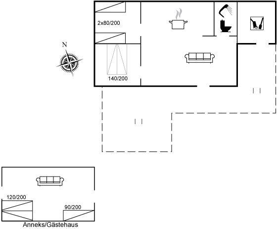 SchlafverhältnisseDie Schlafplätze verteilen sich auf 3 Schlafräume. 4 Schlafplätze in Doppelbetten. 3 Schlafplätze in Einzelbetten.- 3 von diesen Schlafplätzen befindet sich im Gästehaus.