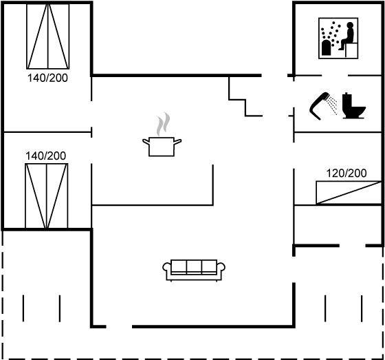 Das Ferienhaus eignet sich für 5 Personen. Die Ferienunterkunft hat eine Wohnfläche von 87 m² und wurde 1987 gebaut. Haustiere dürfen nicht mitgebracht werden. Die Ferienunterkunft ist mit Waschmaschine ausgestattet. Wäschetrockner. Tiefkühlmöglichkeit mit 28 Liter Nutzinhalt. Es gibt außerdem einen Kaminofen. Für die jüngsten Feriengäste ist 1 Kinderhochstuhl vorhanden.