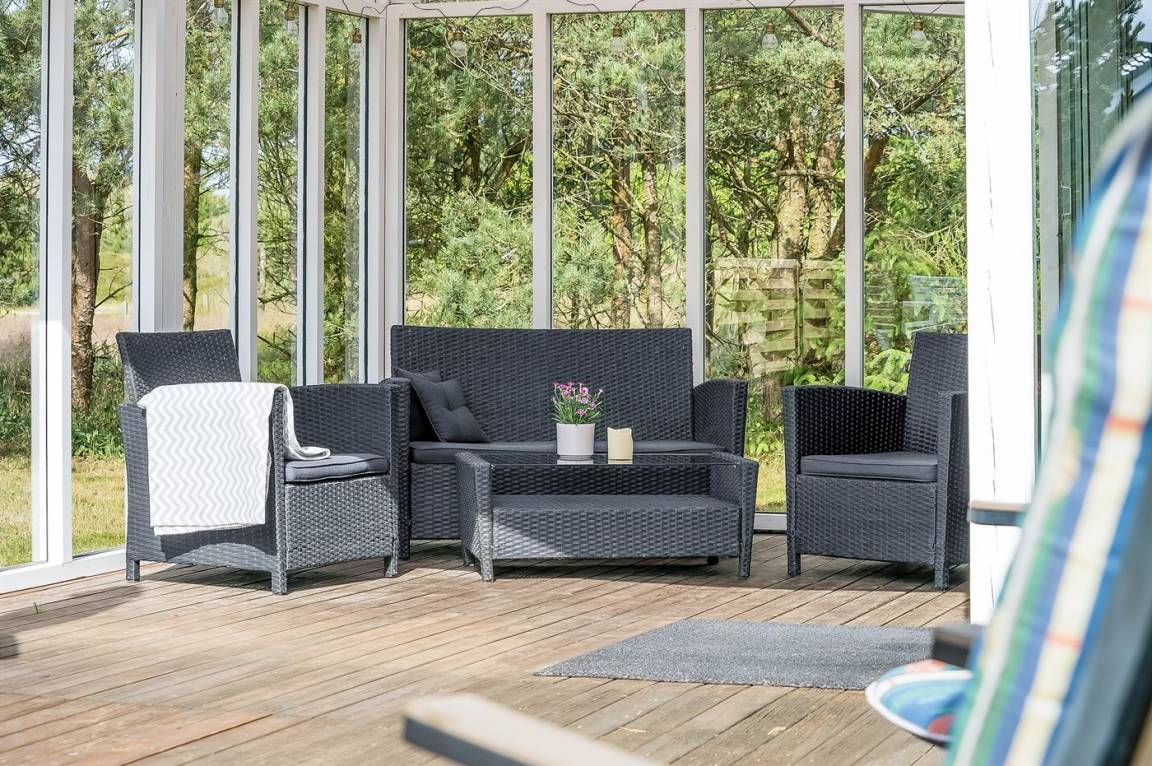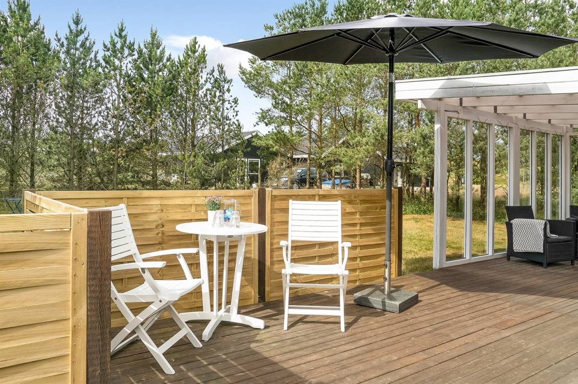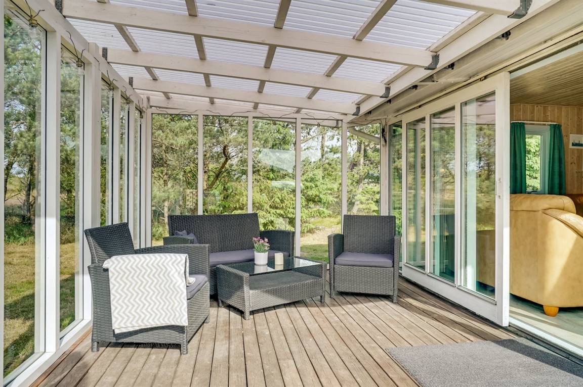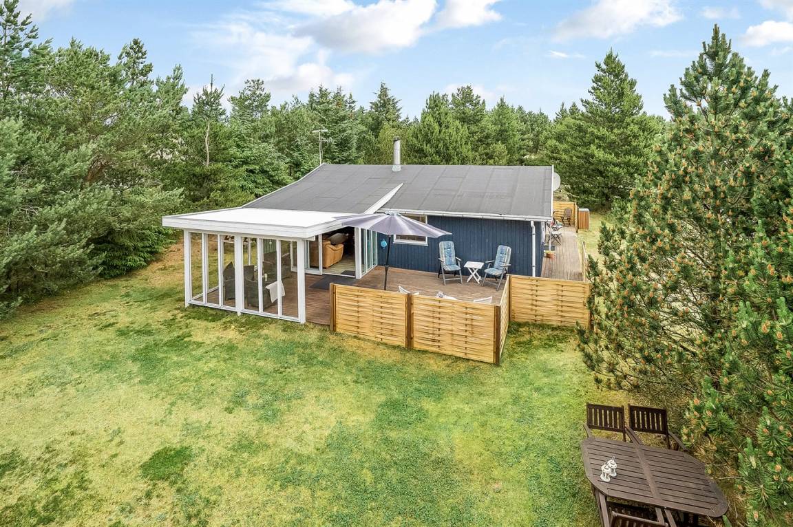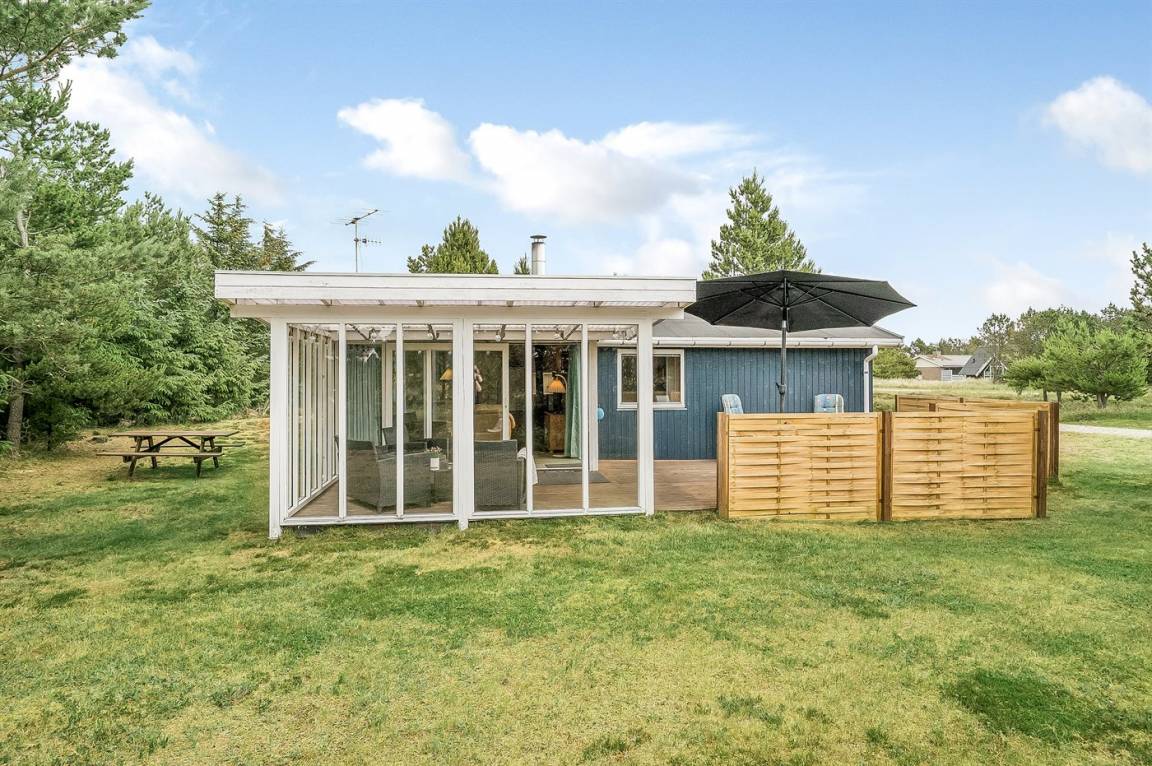 DraußenDie Ferienunterkunft liegt auf einem 1600 m² großen Dünengrundstück. Die Entfernung zum Meer beträgt 900 m. Die nächste Einkaufsmöglichkeit liegt 900 m entfernt. Es steht ein 40 m² Terrassenareal zur Verfügung. Außerdem gibt es 10 m² überdachte Terrasse. Geräteraum. Parkplatz auf dem Grundstück.