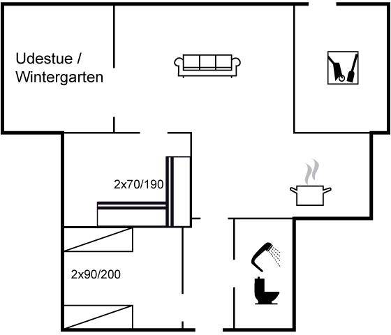MultimedienIn der Ferienunterkunft gibt es einen Fernseher. Radio. CD-Player. Mindestens 4 dänische Fernsehsender. Mindestens 4 deutsche Fernsehsender. Es steht kabellose Internetverbindung zur Verfügung.