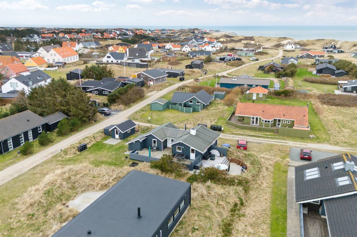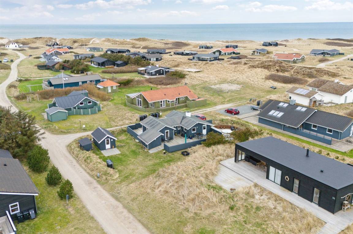 DraußenDie Ferienunterkunft liegt auf einem 780 m² großen Dünengrundstück. Die Entfernung zum Meer beträgt 200 m. Die nächste Einkaufsmöglichkeit liegt 200 m entfernt. In einem Abstand von 5000 m gibt es einen Golfplatz. Es steht ein 100 m² Terrassenareal zur Verfügung. Geräteraum. Es steht ein Grill zur Verfügung. Parkplatz auf dem Grundstück.