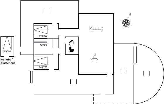 SchlafverhältnisseDie Schlafplätze verteilen sich auf 4 Schlafräume. 6 Schlafplätze in Doppelbetten. 2 Schlafplätze in einem Etagenbett. 2 von diesen Schlafplätzen befinden sich im Gästehaus. Ferner steht ein Kinderbett zur Verfügung.