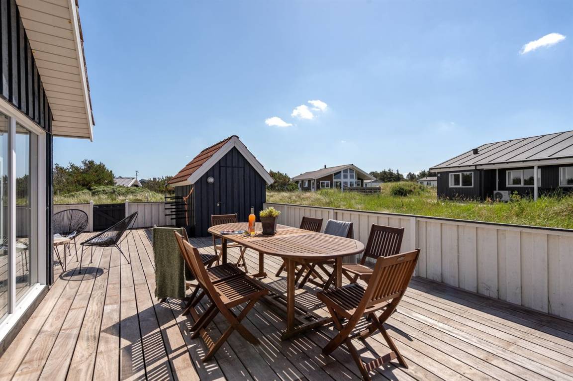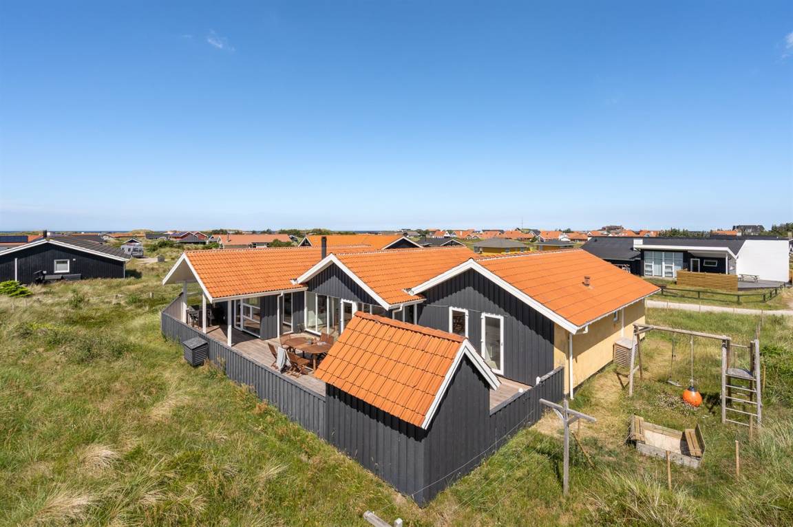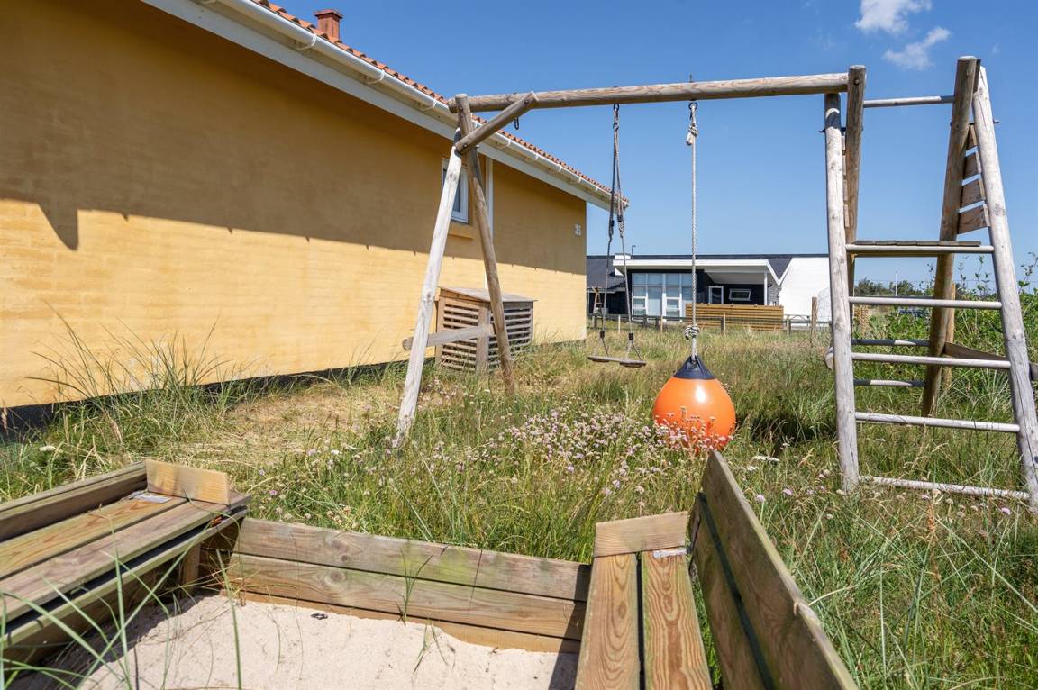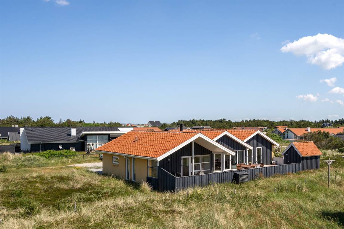 DraußenDie Ferienunterkunft liegt auf einem 1100 m² großen Naturgrundstück. Das Grundstück ist eingezäunt. Die Entfernung zum Meer beträgt 600 m. Die nächste Einkaufsmöglichkeit liegt 500 m entfernt. In einem Abstand von 5000 m gibt es einen Golfplatz. Es stehen 100 m² offene sowie 12 m² überdachte Terrasse zur Verfügung. Davon sind insgesamt 75 m² geschlossen. Geräteraum. Schaukel. Sandkasten. Es steht ein Grill zur Verfügung. Es ist ein Ladestecker für Elektroautos installiert. Parkplatz auf dem Grundstück.