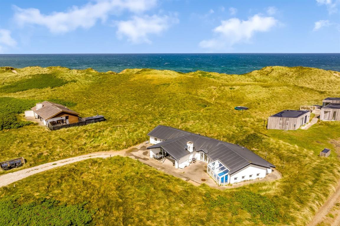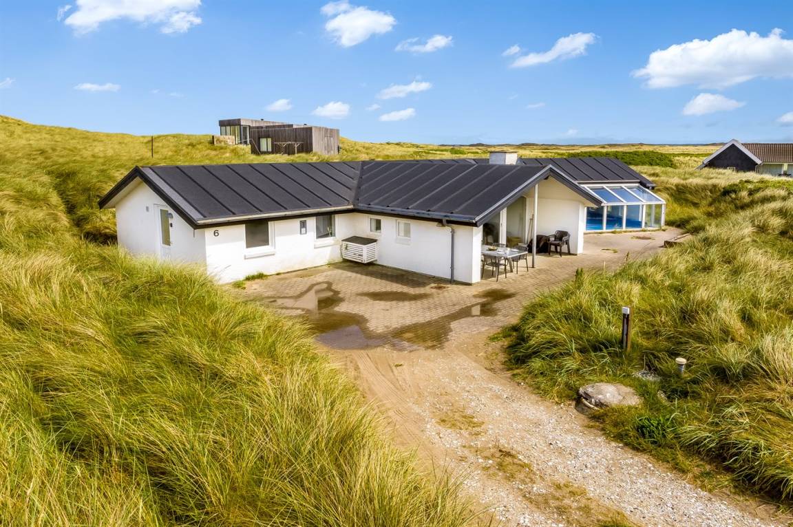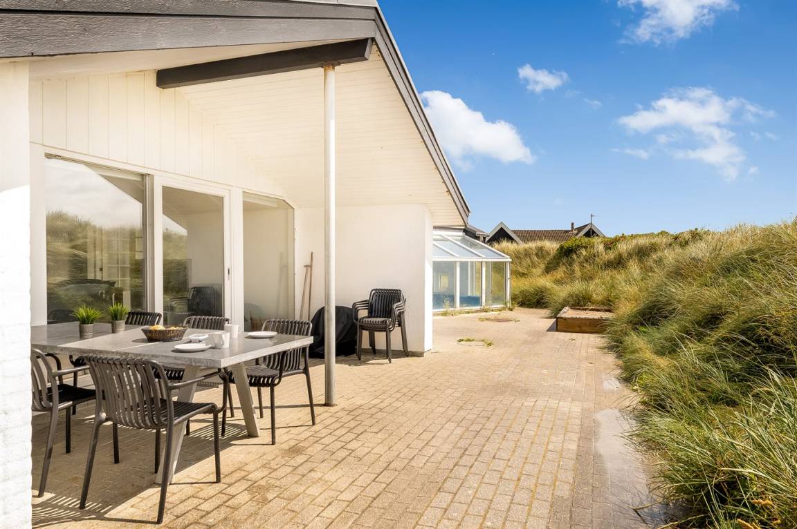 DraußenDie Ferienunterkunft liegt auf einem 2217 m² großen Dünengrundstück. Die Entfernung zum Meer beträgt 70 m. Die nächste Einkaufsmöglichkeit liegt 600 m entfernt. Es steht ein offenes Terrassenareal zur Verfügung. Außerdem gibt es überdachte Terrasse. Sandkasten. Es steht ein Grill zur Verfügung. Parkplatz auf dem Grundstück.