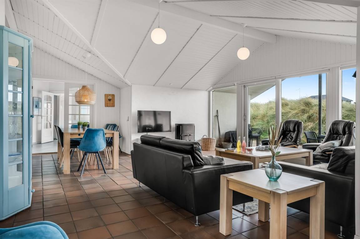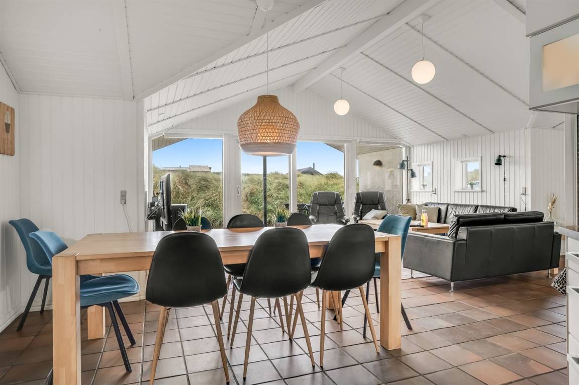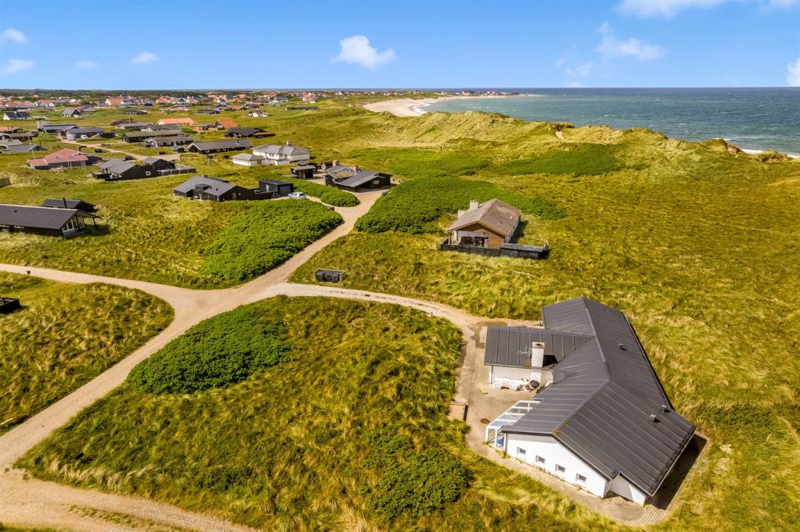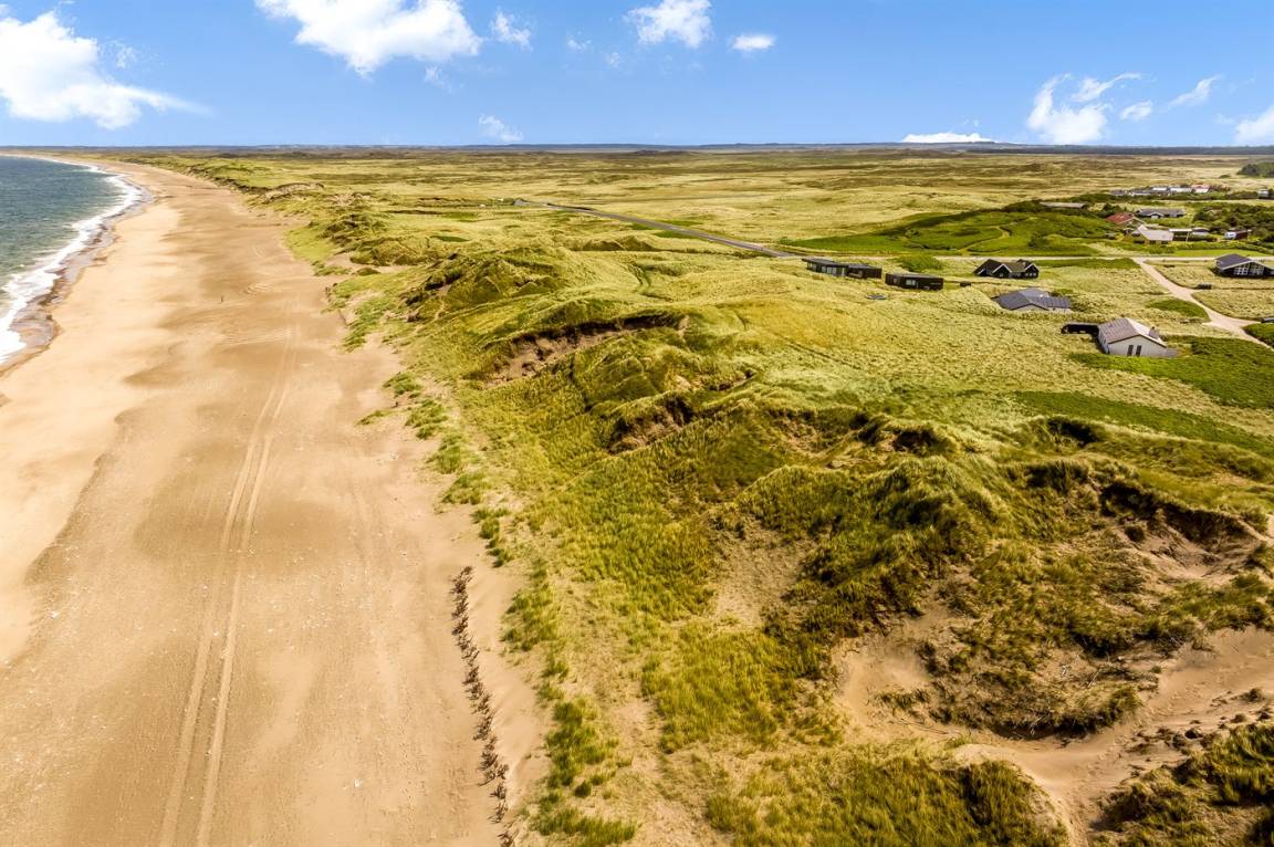 DraußenDie Ferienunterkunft liegt auf einem 2217 m² großen Dünengrundstück. Die Entfernung zum Meer beträgt 70 m. Die nächste Einkaufsmöglichkeit liegt 600 m entfernt. Es steht ein offenes Terrassenareal zur Verfügung. Außerdem gibt es überdachte Terrasse. Sandkasten. Es steht ein Grill zur Verfügung. Parkplatz auf dem Grundstück.