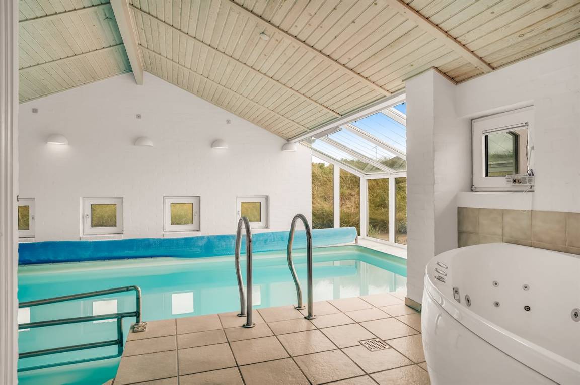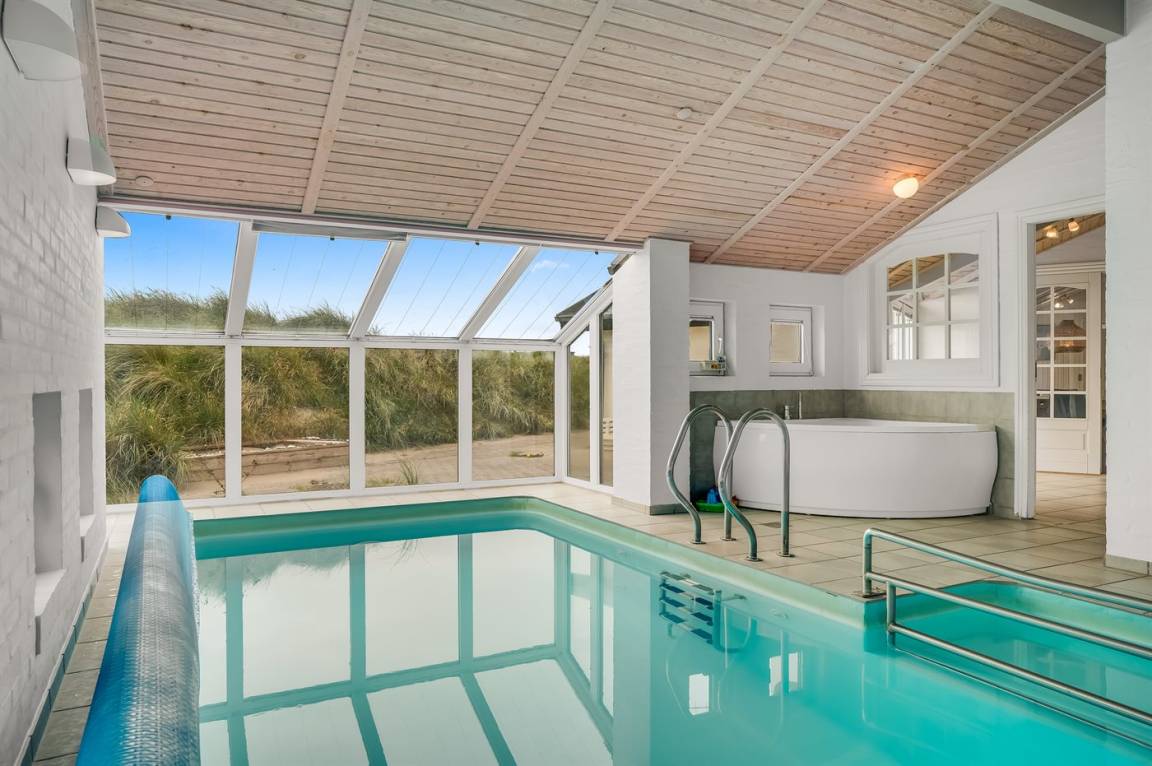 In bester Lage in der ersten Dünenreihe, nur 70 Meter von der herrlichen Nordsee entfernt, findest du dieses schöne Ferienhaus mit Swimmingpool. Das Haus liegt auf einem abgesenkten Grundstück, sodass du dich hier völlig ungestört aufhalten kannst – ganz ohne störende Geräusche von den umliegenden Häusern.