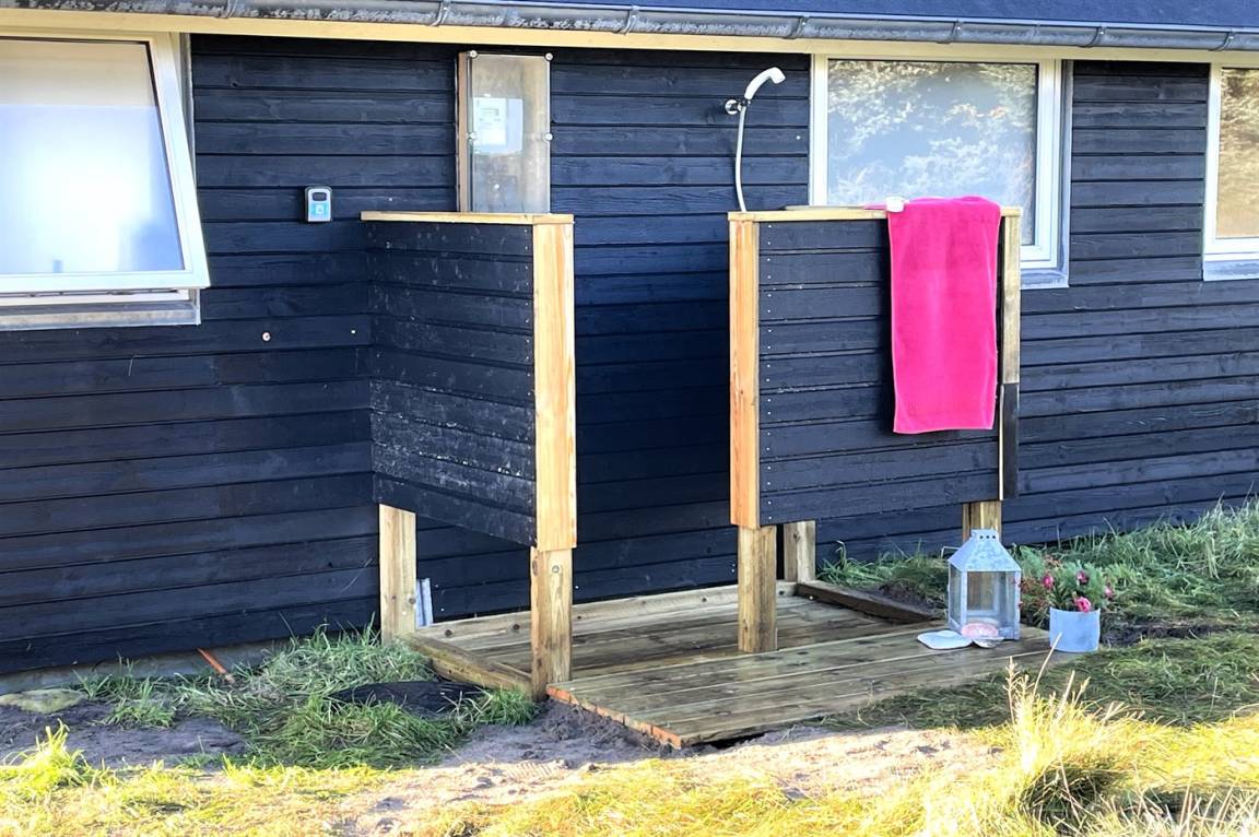 DraußenDie Ferienunterkunft liegt auf einem 4000 m² großen Naturgrundstück. Die Entfernung zum Meer beträgt 300 m. Die nächste Einkaufsmöglichkeit liegt 600 m entfernt. Es steht ein 50 m² Terrassenareal zur Verfügung. Geräteraum. Außendusche. Parkplatz auf dem Grundstück.