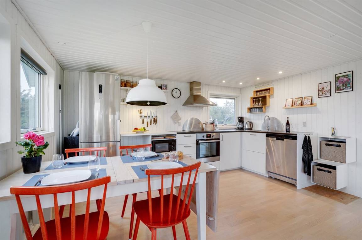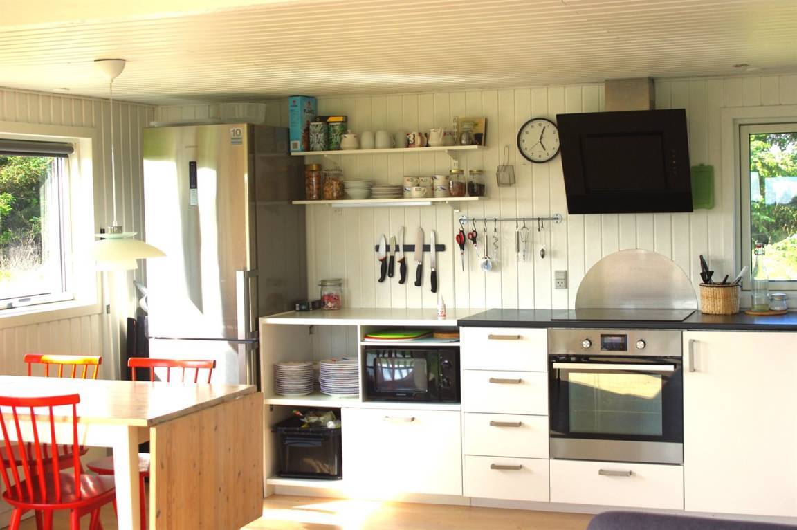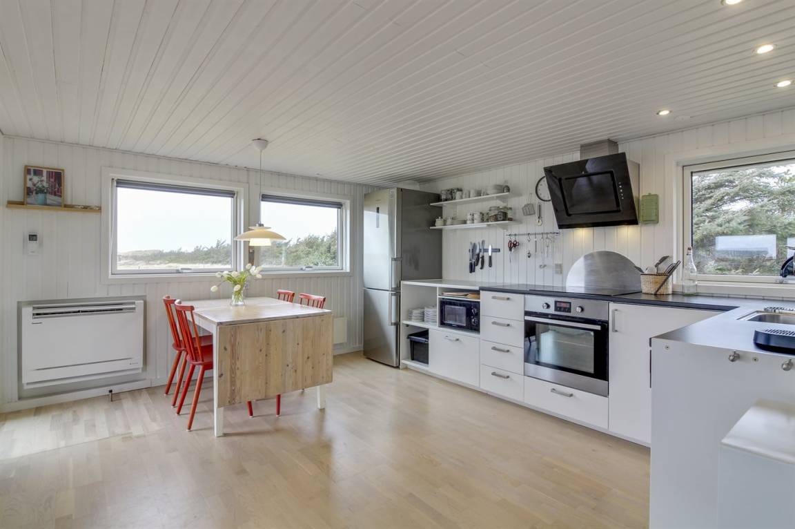 EinrichtungDas Ferienhaus eignet sich für 6 Personen. 2 der Schlafplätze eignen sich jedoch nur für größere Kinder (4-11 Jahre). Die Ferienunterkunft hat eine Wohnfläche von 81 m² und wurde 1972 gebaut. 2016 wurde die Ferienunterkunft renoviert. Haustiere dürfen nicht mitgebracht werden. Die Ferienunterkunft ist mit energiesparender Wärmepumpe ausgestattet. Fußbodenheizung in allen Klinkerböden. Die Ferienunterkunft ist mit Waschmaschine ausgestattet. Wäschetrockner. Tiefkühlmöglichkeit mit 60 Liter Nutzinhalt. Es gibt außerdem einen Kaminofen.