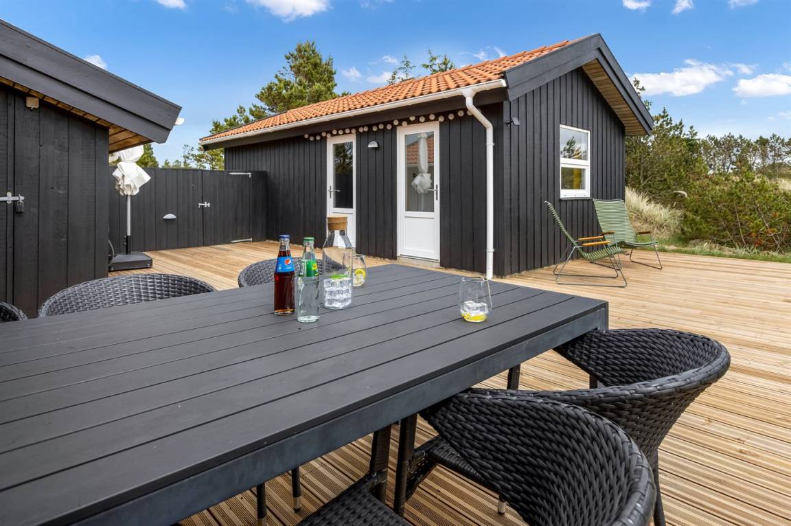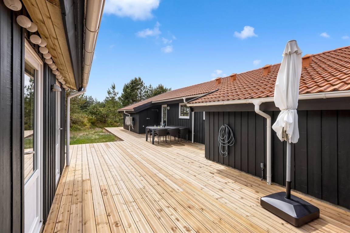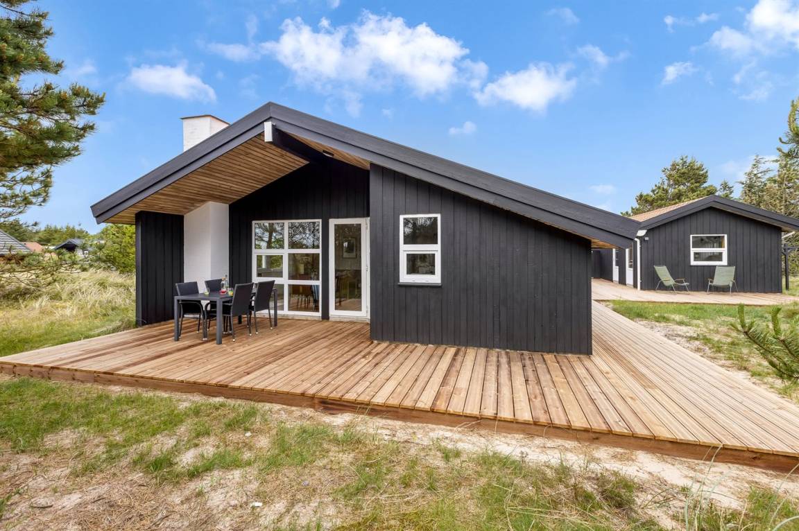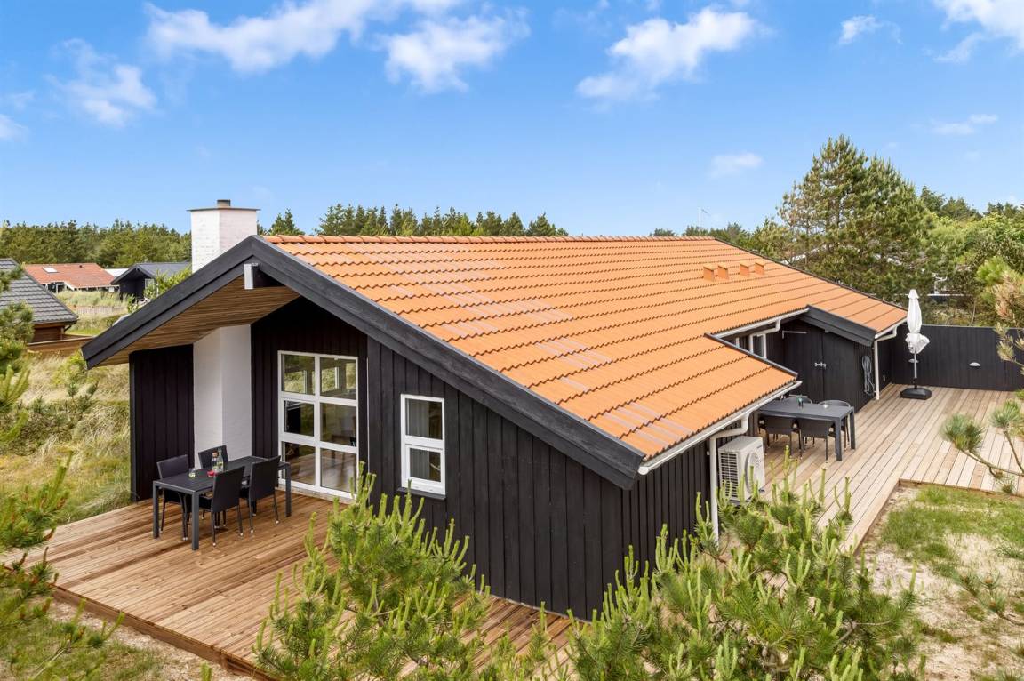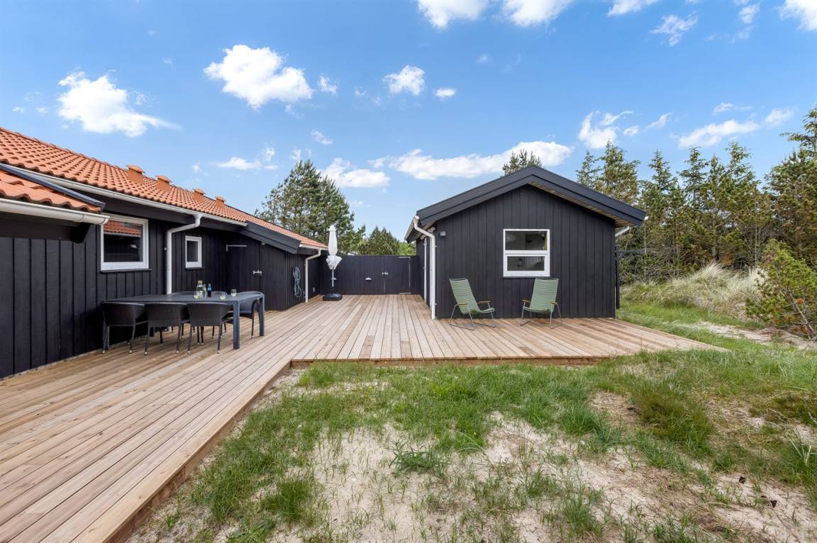 DraußenDie Ferienunterkunft liegt auf einem 1400 m² großen Dünengrundstück. Die Entfernung zum Meer beträgt 900 m. Die nächste Einkaufsmöglichkeit liegt 900 m entfernt. In einem Abstand von 6000 m gibt es einen Golfplatz. Es steht ein 110 m² Terrassenareal zur Verfügung. Geräteraum. Es steht ein Grill zur Verfügung. Parkplatz auf dem Grundstück.