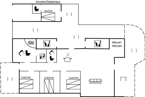 SchlafverhältnisseDie Schlafplätze verteilen sich auf 4 Schlafräume. 8 Schlafplätze in Einzelbetten. 2 von diesen Schlafplätzen befinden sich im Gästehaus. Ferner steht ein Kinderbett zur Verfügung.
