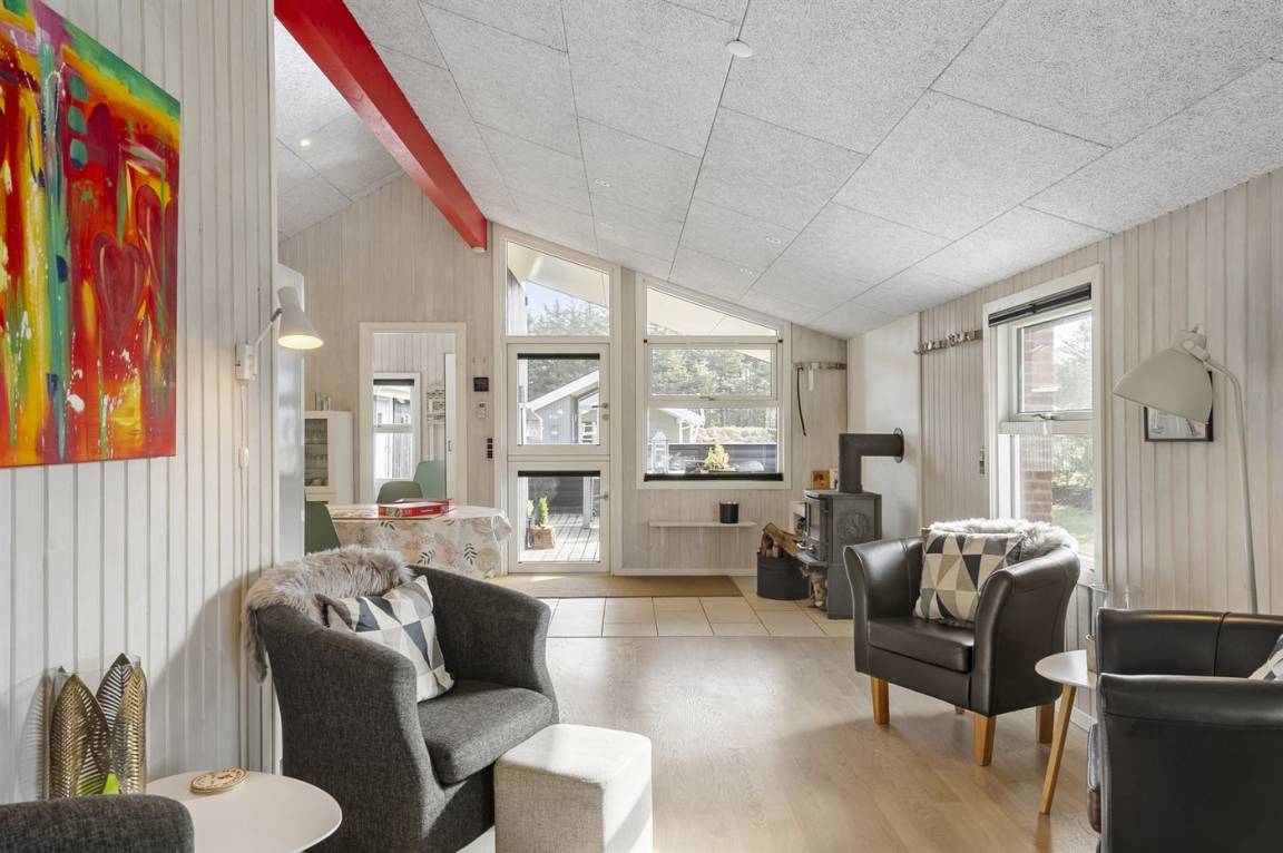 In dem gemütlichen Fischerdorf, Nr. Vorupør, wo die grossen Fischerboote noch am Strand liegen, finden Sie dieses geräumige Ferienhaus. Das Haus präsentiert sich im nordischen Stil – hell und freundlich.