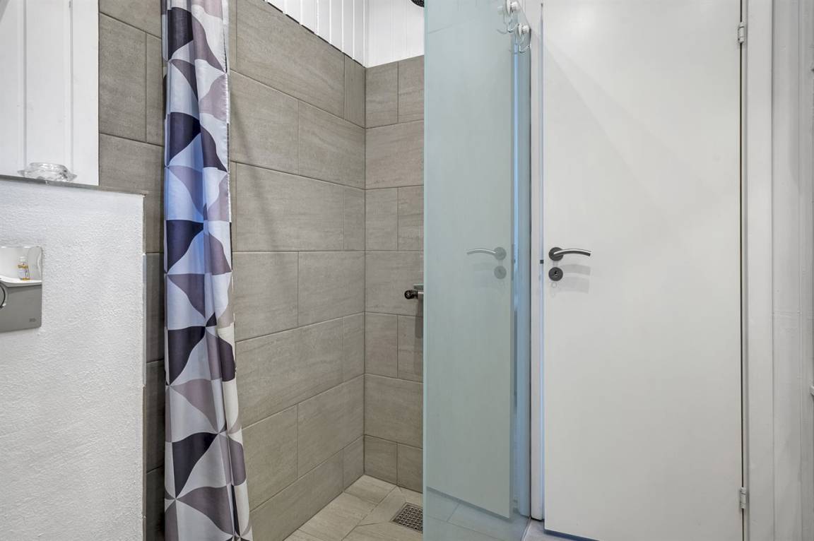 WC und BadEs gibt 1 Badezimmer mit Duschnische und 2 Toiletten, davon 1 Gästetoilette. Fußbodenheizung in 2 Badezimmern. Ein Haartrockner ist vorhanden.