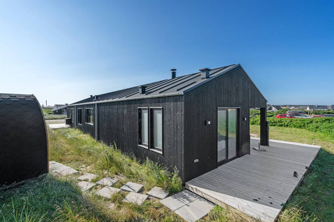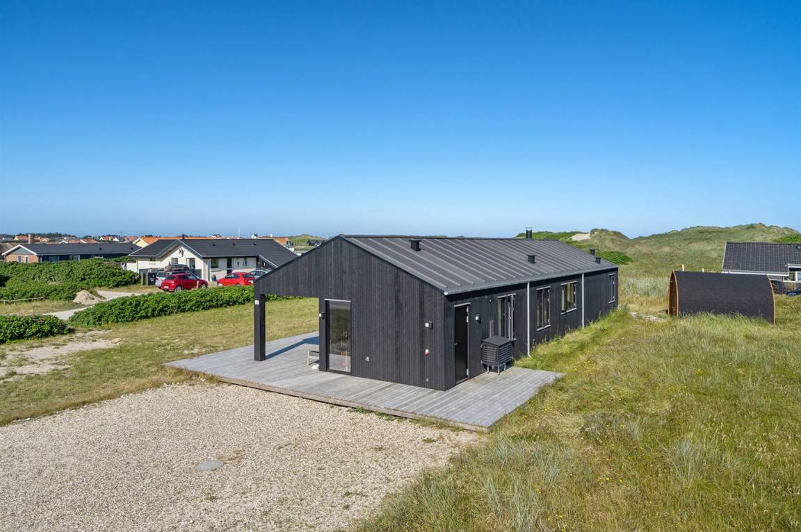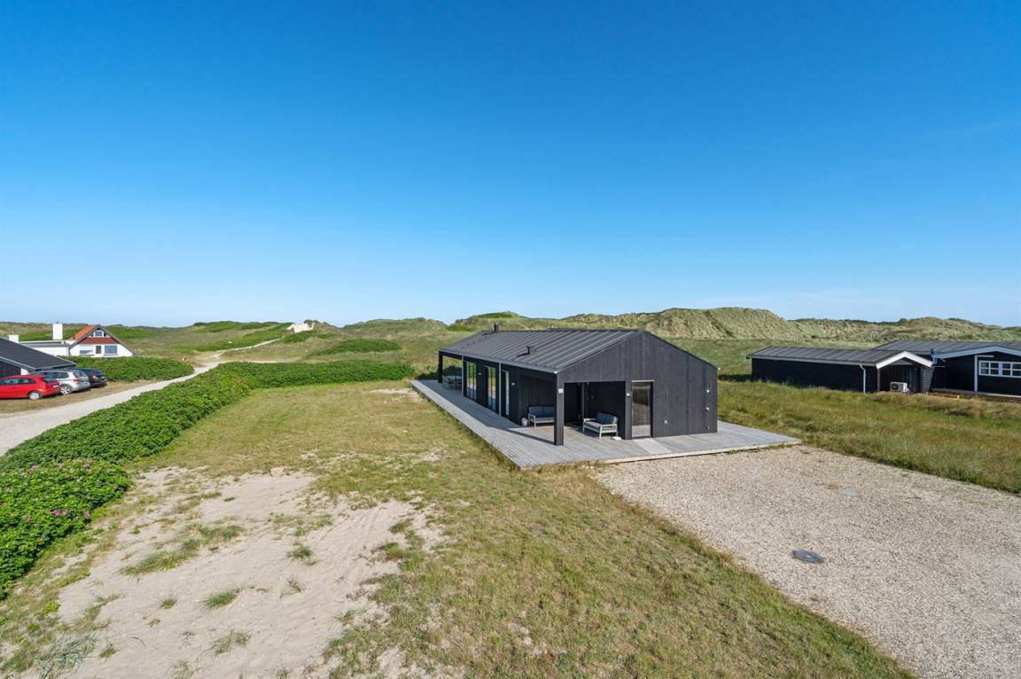 DraußenDie Ferienunterkunft liegt auf einem 1050 m² großen Dünengrundstück. Die Entfernung zum Meer beträgt 50 m. Die nächste Einkaufsmöglichkeit liegt 500 m entfernt. In einem Abstand von 4000 m gibt es einen Golfplatz. Es steht ein 122 m² Terrassenareal zur Verfügung. Außerdem gibt es 30 m² überdachte Terrasse. Geräteraum. Außensauna. Parkplatz auf dem Grundstück.
