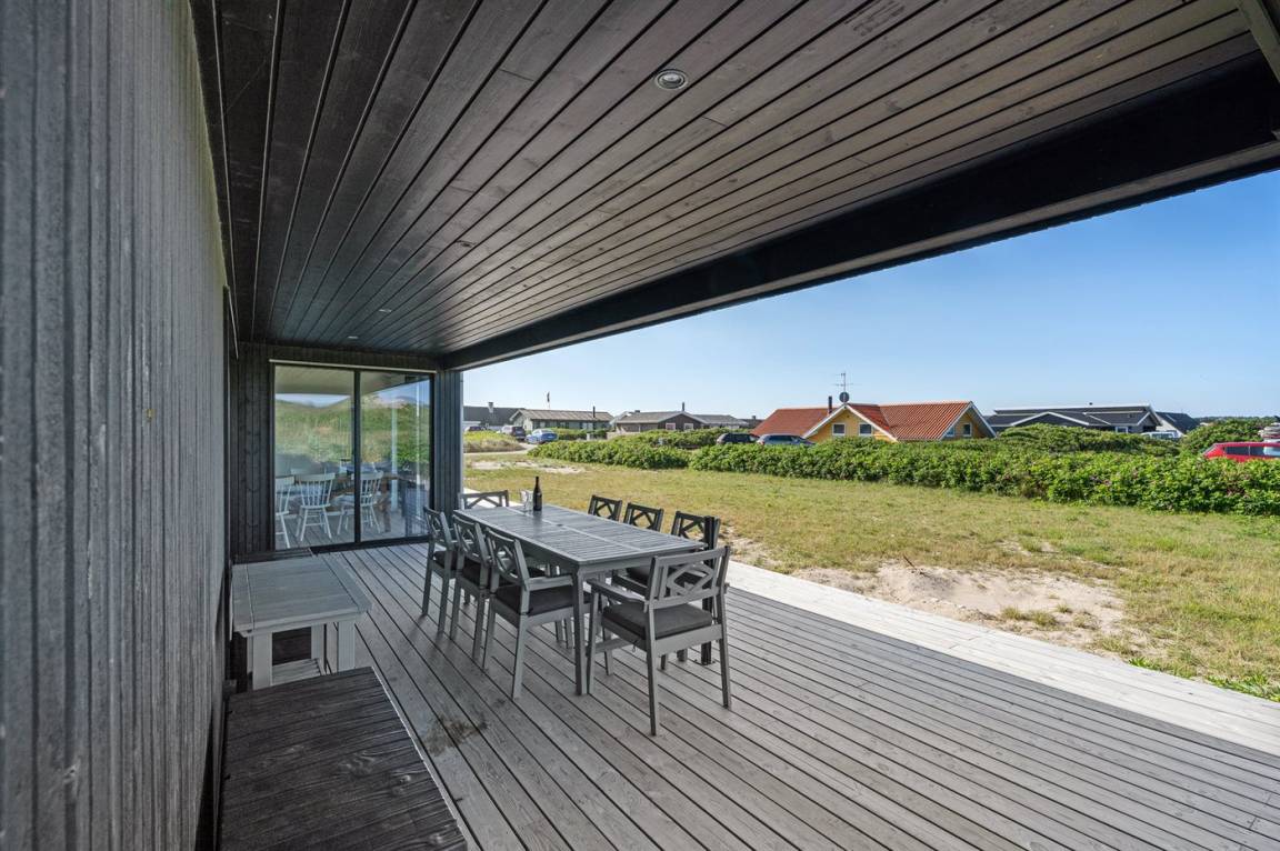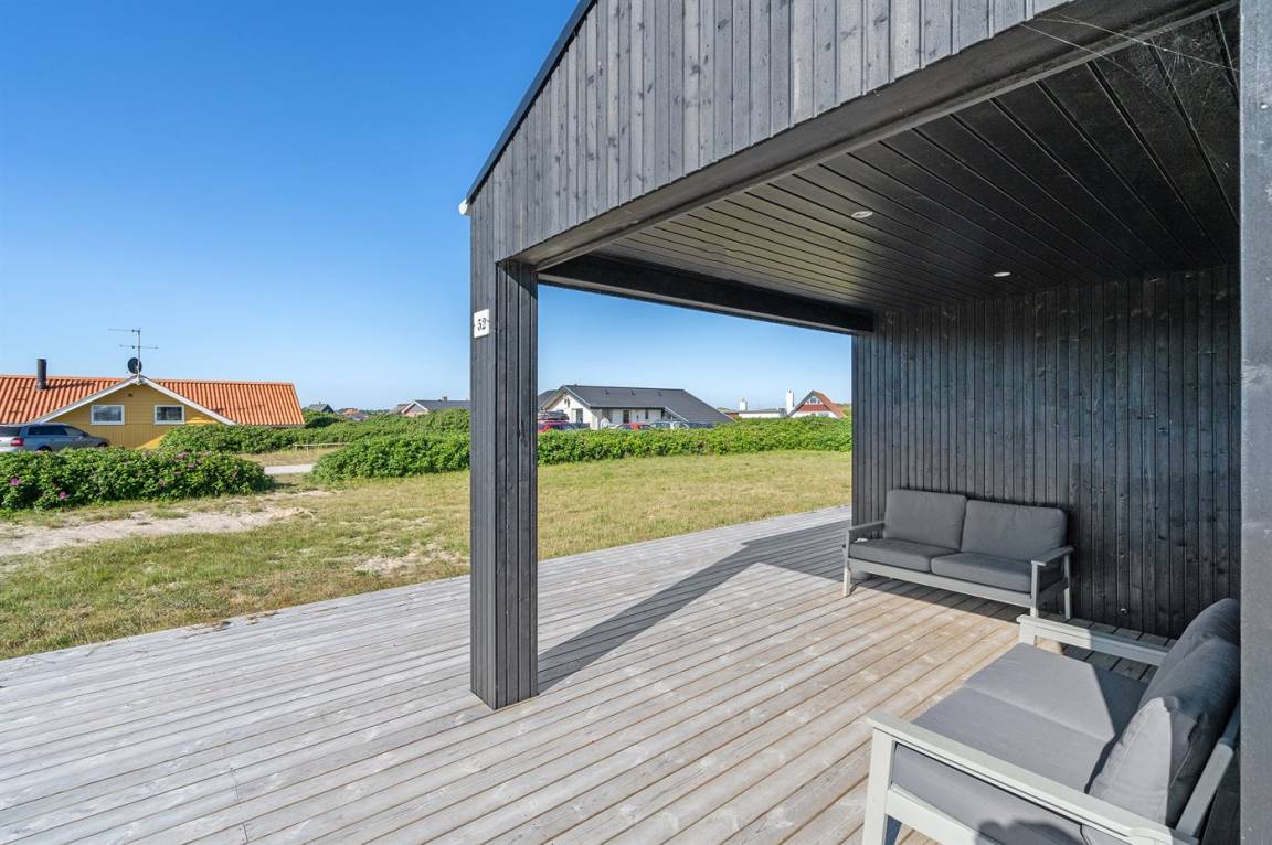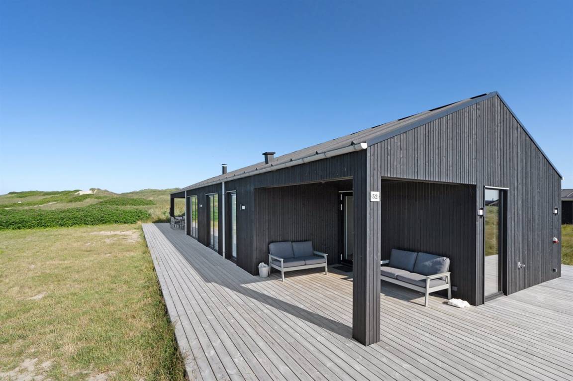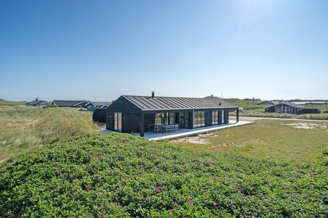 DraußenDie Ferienunterkunft liegt auf einem 1050 m² großen Dünengrundstück. Die Entfernung zum Meer beträgt 50 m. Die nächste Einkaufsmöglichkeit liegt 500 m entfernt. In einem Abstand von 4000 m gibt es einen Golfplatz. Es steht ein 122 m² Terrassenareal zur Verfügung. Außerdem gibt es 30 m² überdachte Terrasse. Geräteraum. Außensauna. Parkplatz auf dem Grundstück.