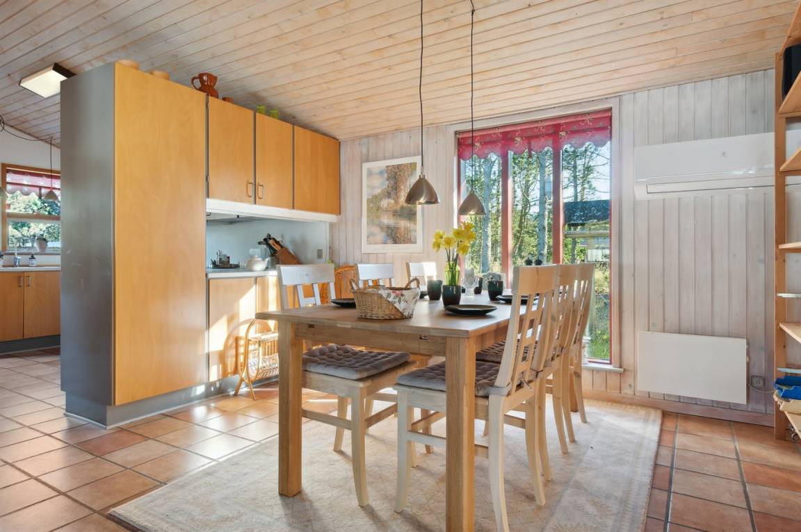 Das Ferienhaus eignet sich für 7 Personen sowie 1 Kleinkind bis zu 3 Jahren. 2 der Schlafplätze eignen sich jedoch nur für größere Kinder (4-11 Jahre). Die Ferienunterkunft hat eine Wohnfläche von 100 m² und wurde 1965 gebaut. 1998 wurde die Ferienunterkunft renoviert. Es ist erlaubt 2 Haustiere mitzubringen. Die Ferienunterkunft ist mit einer energiefreundlichen Luft-Luft-Wärmepumpe ausgestattet. Die Ferienunterkunft ist mit Waschmaschine ausgestattet. Wäschetrockner. Tiefkühlmöglichkeit mit 25 Liter Nutzinhalt. Es gibt außerdem einen Kaminofen. Für die jüngsten Feriengäste ist 1 Kinderhochstuhl vorhanden.