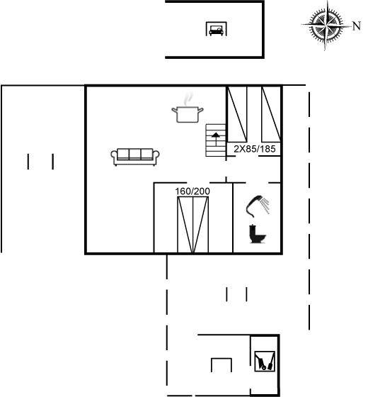 DraußenDie Ferienunterkunft liegt auf einem 1200 m² großen Dünengrundstück. Die Entfernung zum Meer beträgt 200 m. Die nächste Einkaufsmöglichkeit liegt 300 m entfernt. In einem Abstand von 14000 m gibt es einen Golfplatz. Es steht ein 20 m² Terrassenareal zur Verfügung. Außerdem gibt es 12 m² überdachte Terrasse. Geräteraum. Sandkasten. Es steht ein Carport zur Verfügung. Parkplatz auf dem Grundstück.