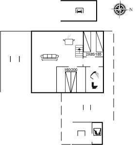 SchlafverhältnisseDie Schlafplätze verteilen sich auf 2 Schlafräume. 4 Schlafplätze in Doppelbetten. 2 Schlafplätze in Einzelbetten. 2 von diesen Schlafplätzen befinden sich im offenen Obergeschoss.