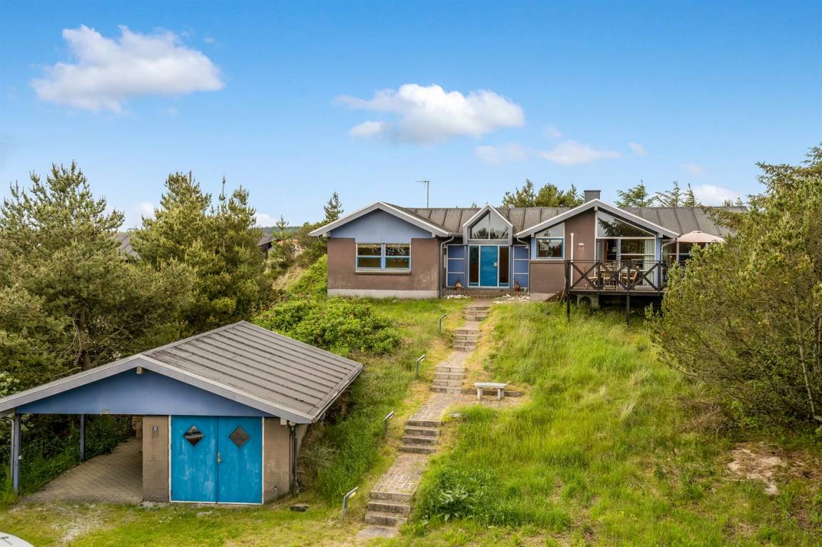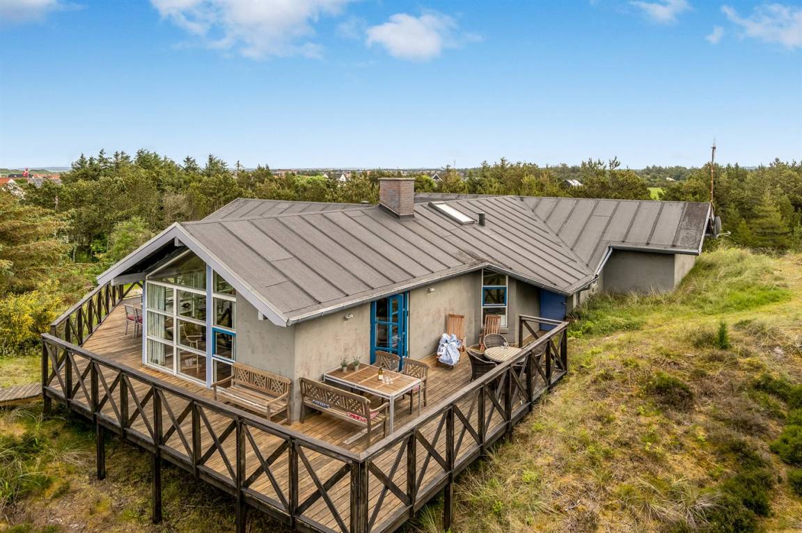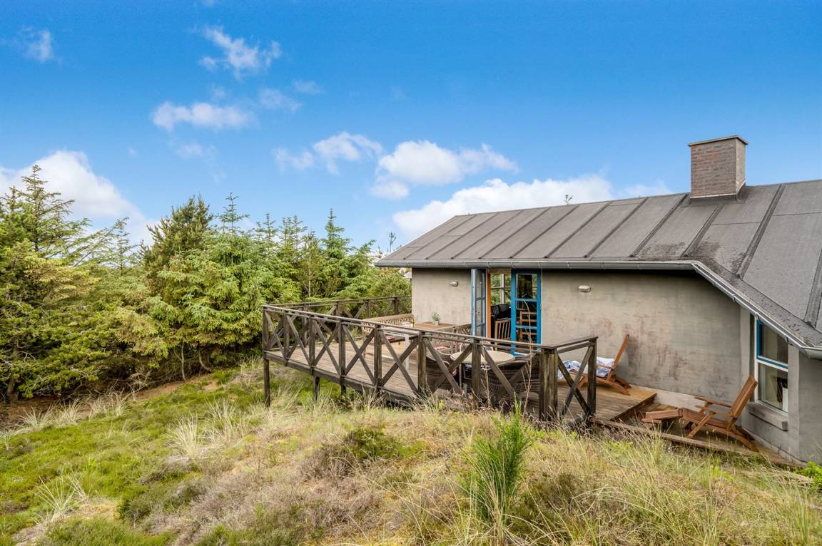 DraußenDie Ferienunterkunft liegt auf einem 2100 m² großen Dünengrundstück.Naturgrundstück. Die Entfernung zum Meer beträgt 600 m. Die nächste Einkaufsmöglichkeit liegt 800 m entfernt. Es steht ein 85 m² Terrassenareal zur Verfügung. Es steht ein Grill zur Verfügung. Es steht ein Carport zur Verfügung. Parkplatz auf dem Grundstück.
