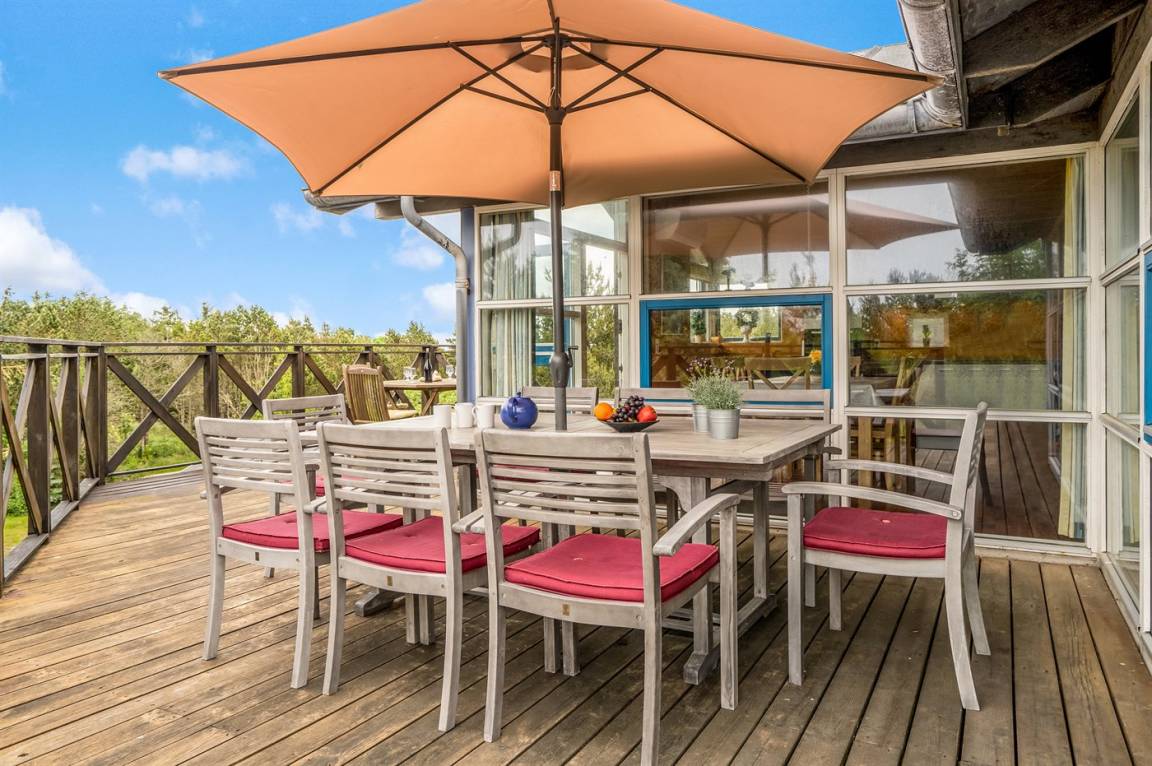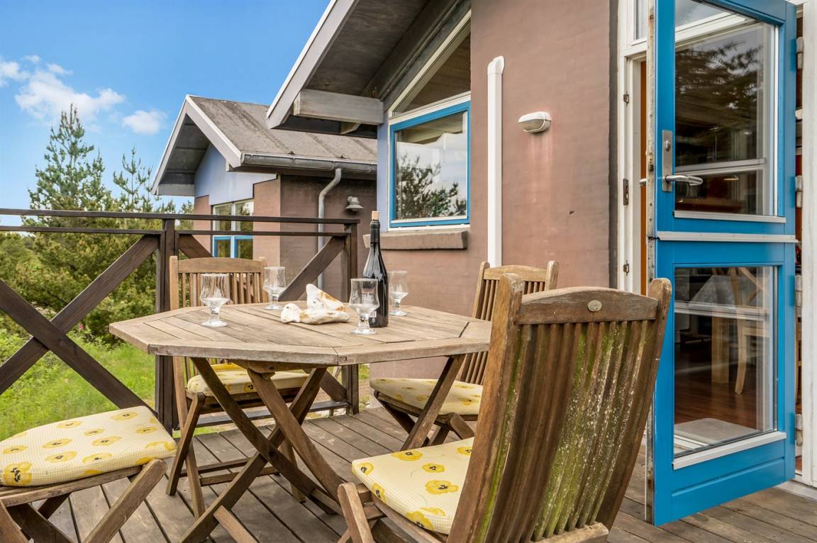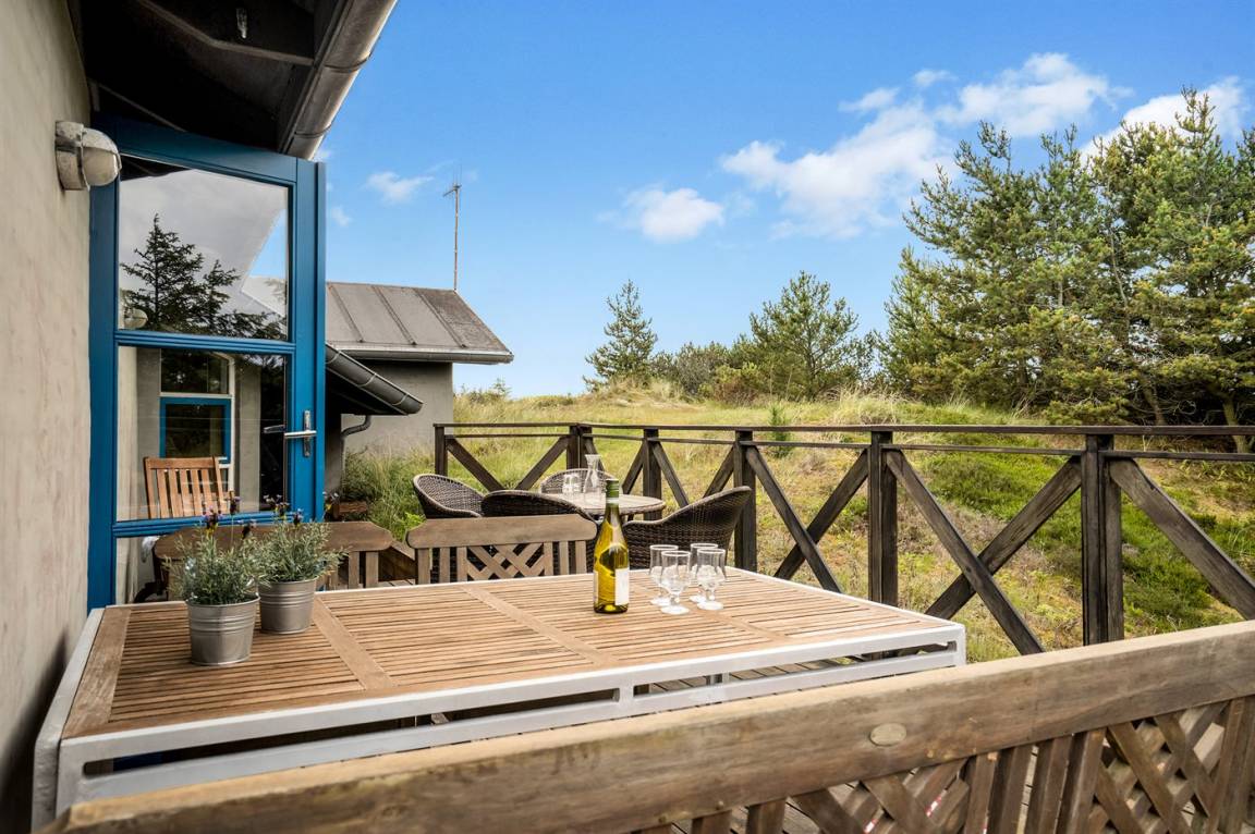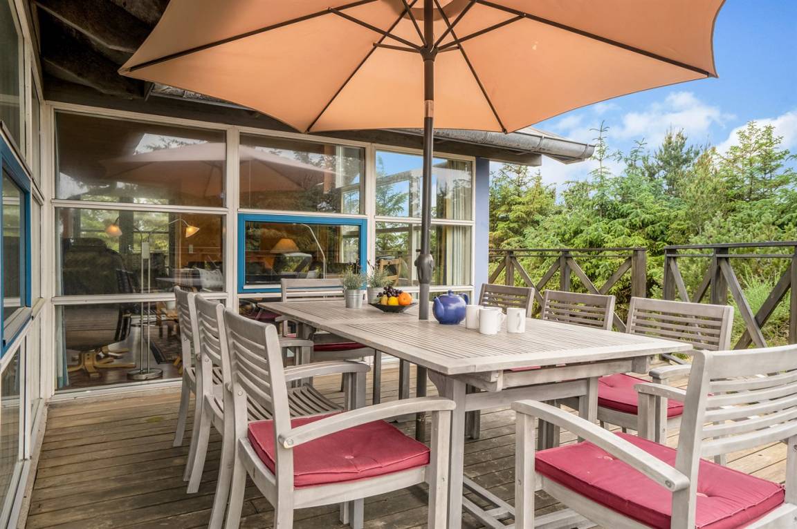 DraußenDie Ferienunterkunft liegt auf einem 2100 m² großen Dünengrundstück.Naturgrundstück. Die Entfernung zum Meer beträgt 600 m. Die nächste Einkaufsmöglichkeit liegt 800 m entfernt. Es steht ein 85 m² Terrassenareal zur Verfügung. Es steht ein Grill zur Verfügung. Es steht ein Carport zur Verfügung. Parkplatz auf dem Grundstück.