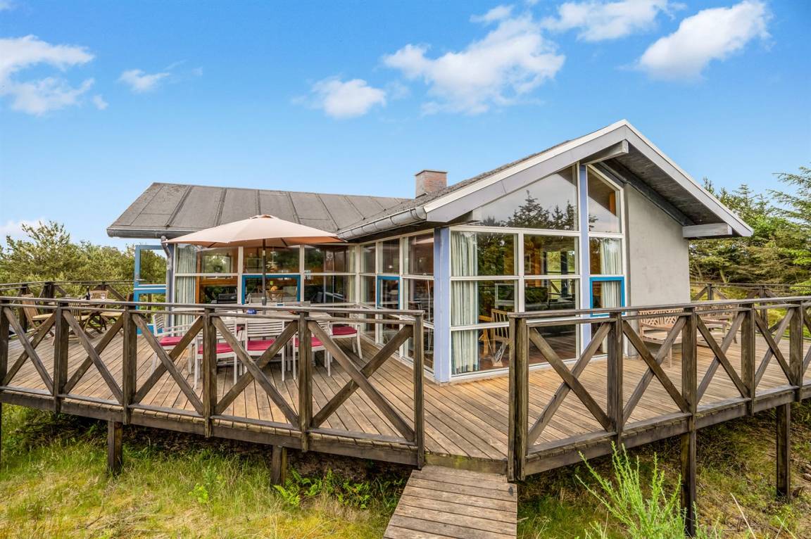 Auf einer hohen Düne mitten in Klitmøller liegt dieses fantastische Ferienhaus. Vom Haus hat man einen sagenhaften Blick auf Klitmøller und die Nordsee.