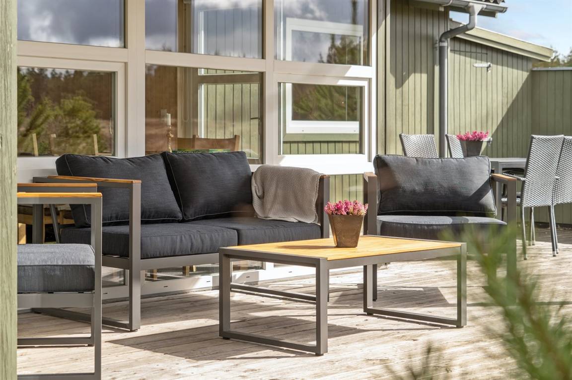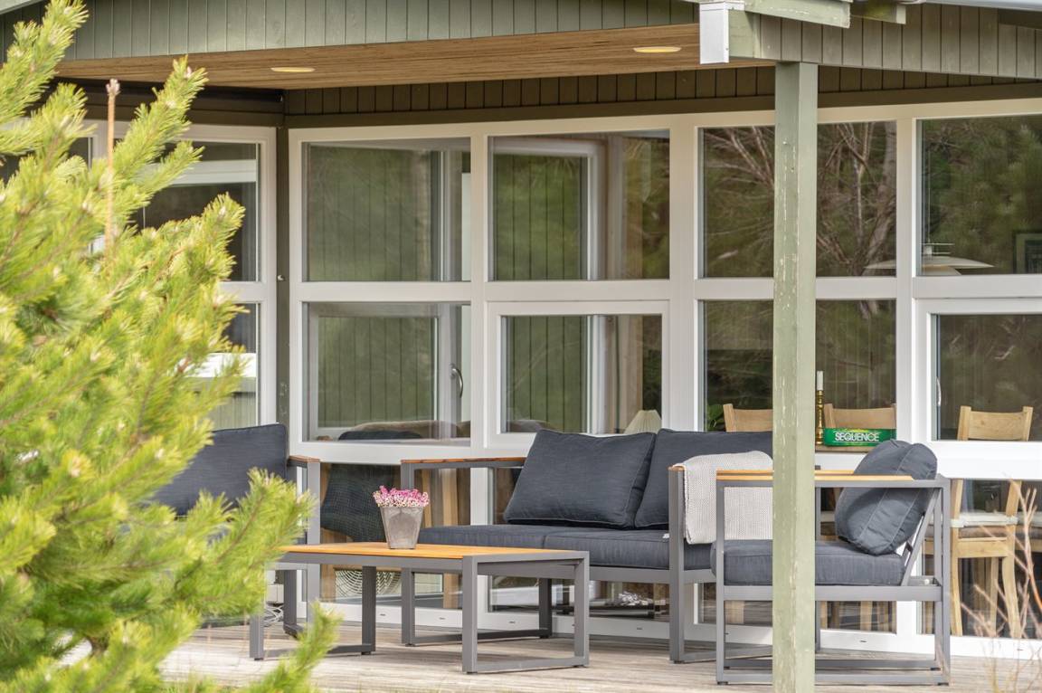 DraußenDie Ferienunterkunft liegt auf einem 2510 m² großen Naturgrundstück. Die Entfernung zum Meer beträgt 1100 m. Die nächste Einkaufsmöglichkeit liegt 800 m entfernt. Es steht ein 49 m² Terrassenareal zur Verfügung. Außerdem gibt es 21 m² überdachte Terrasse. Geräteraum. Es steht ein Weber Kugelgrill für Kohle zur Verfügung. Außerdem ist ein Sonnenschirm vorhanden. Es steht ein Carport zur Verfügung. Parkplatz auf dem Grundstück.