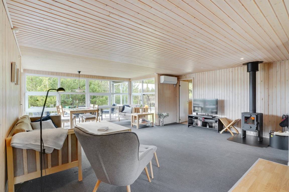 Im Kræn Tækkers Vej am Rand der Nystrup Dünenpflanzung liegt dieses sehr gepflegte Ferienhaus. Das Haus liegt auf einem 2510 m² grossen Naturgrundstück mit Birken, Kiefern und Tannen. Die Bäume machen einen fantastischen Windschutz um das ganze Haus herum.
