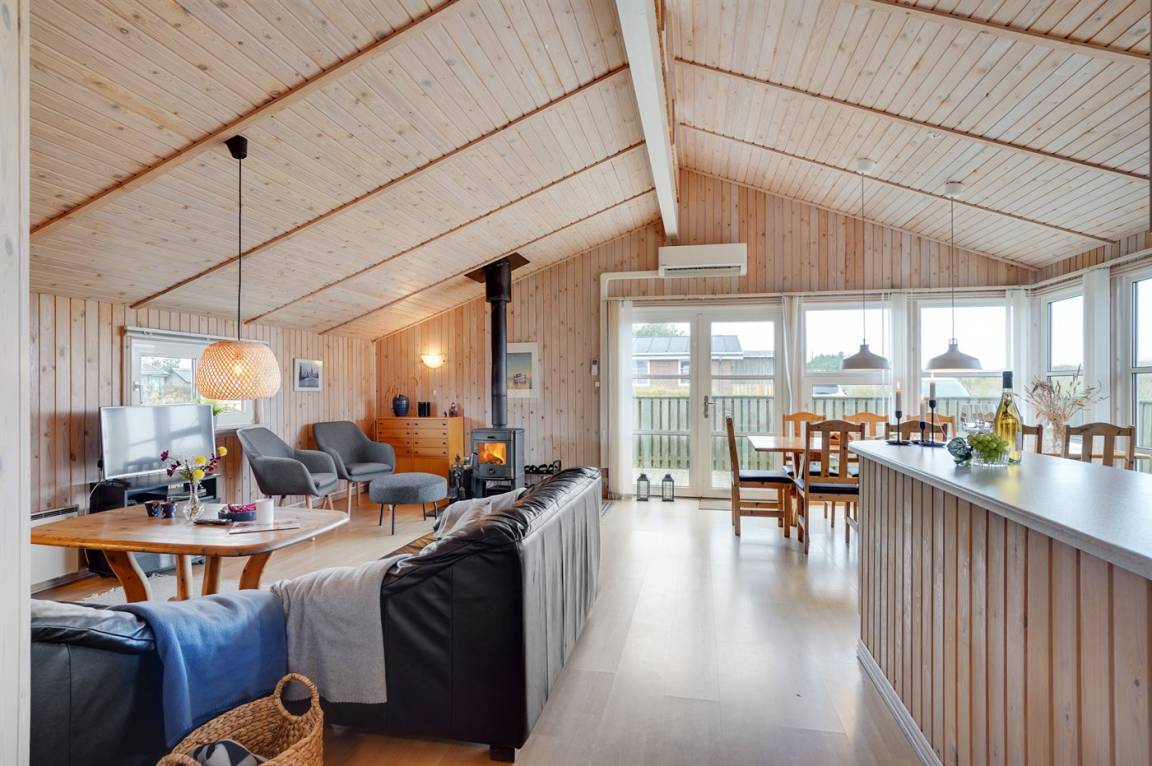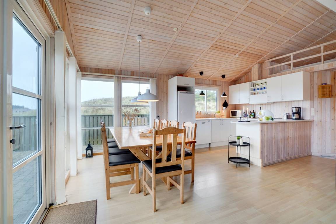 Am Rande des beliebten Feriengebietes Klitmøller auch als Cold Hawaii bekannt, mit nur 950 m zum Wasser, liegt dieses äußerst geräumige Ferienhaus. Hier sind Sie nahe am Strand und dem beliebten Surferparadies sowie am Nationalpark Thy mit seiner einzigartigen Natur, die zu lange Wanderungen einlädt. Wenn Sie gerne Golf spielen gibt es einen guten und leicht hügeligen Golfplatz nur 3 km vom Haus entfernt und in Hanstholm, etwa 15 km vom Haus entfernt, finden Sie das Museumscenter Hanstholm, wo Sie Nordeuropas größte Befestigungsanlage aus dem 2. Weltkrieg erleben können.