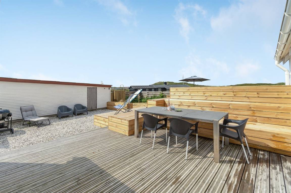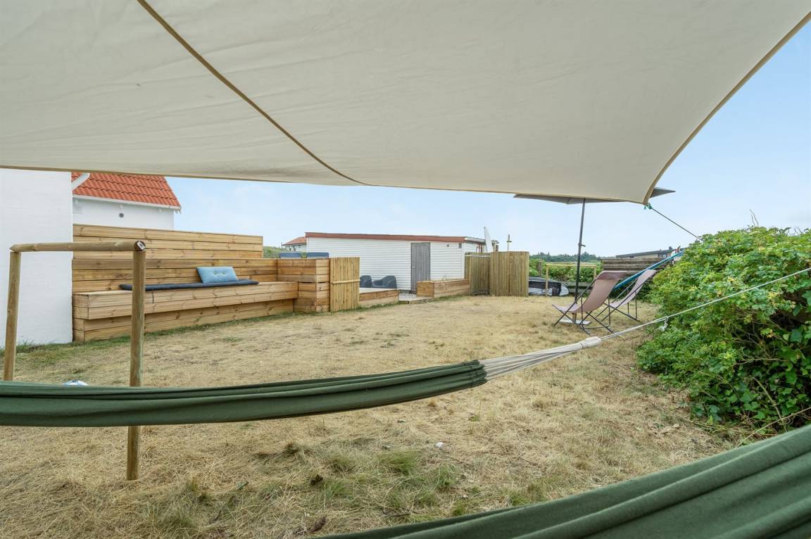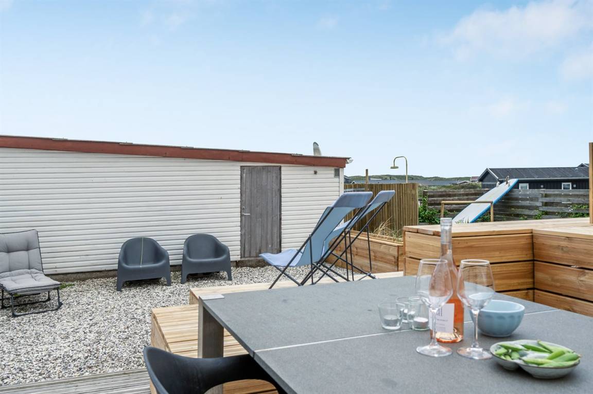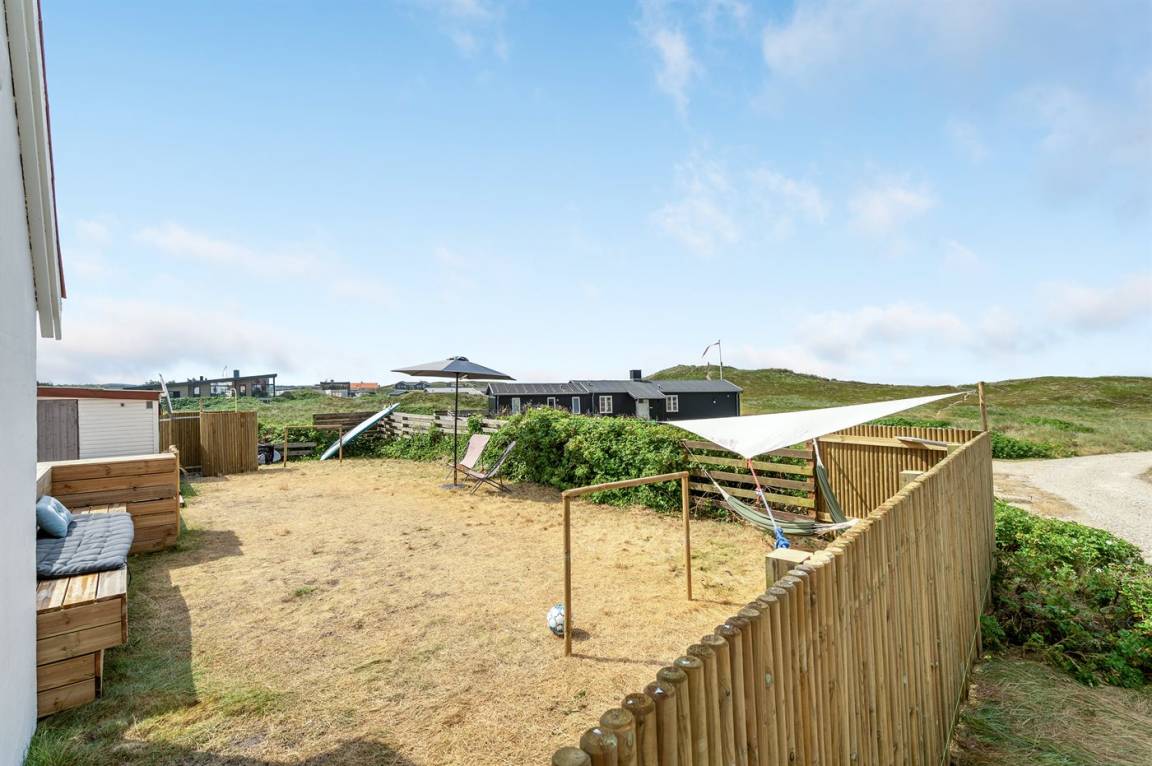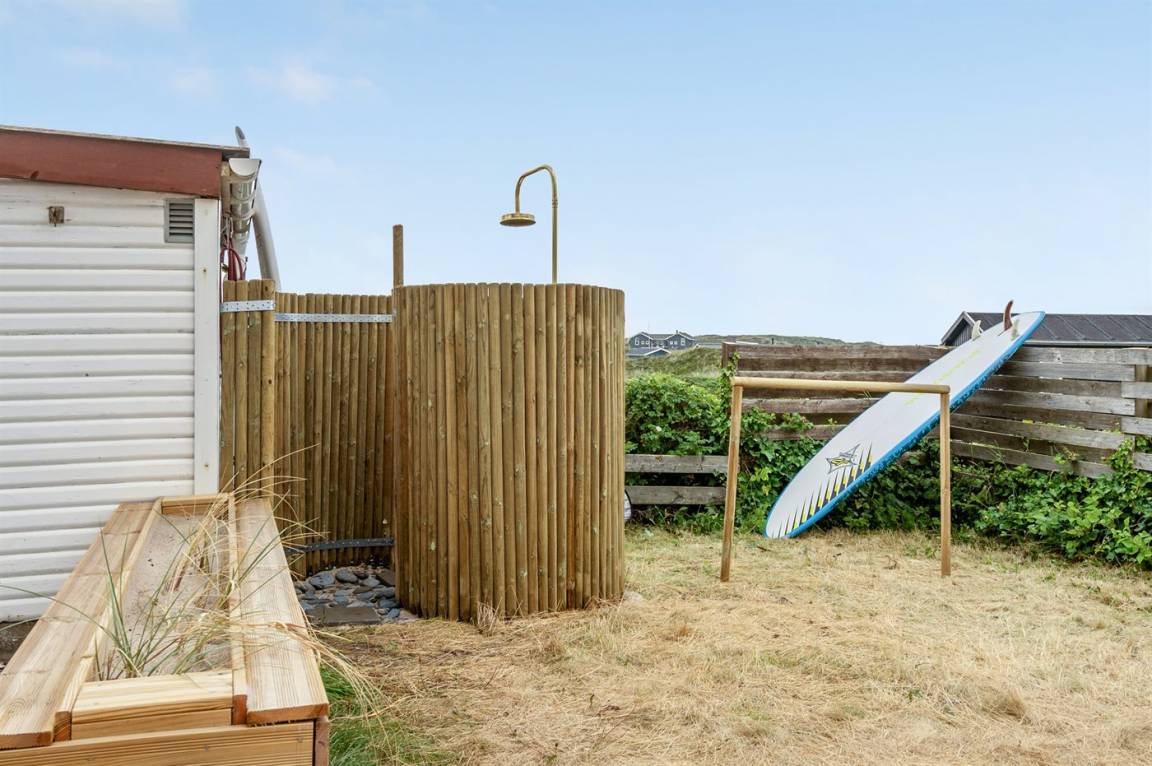 DraußenDie Ferienunterkunft liegt auf einem 1170 m² großen Naturgrundstück. Die Entfernung zum Meer beträgt 150 m. Die nächste Einkaufsmöglichkeit liegt 700 m entfernt. Es steht ein 50 m² Terrassenareal zur Verfügung. Geräteraum. Sandkasten. Parkplatz auf dem Grundstück.