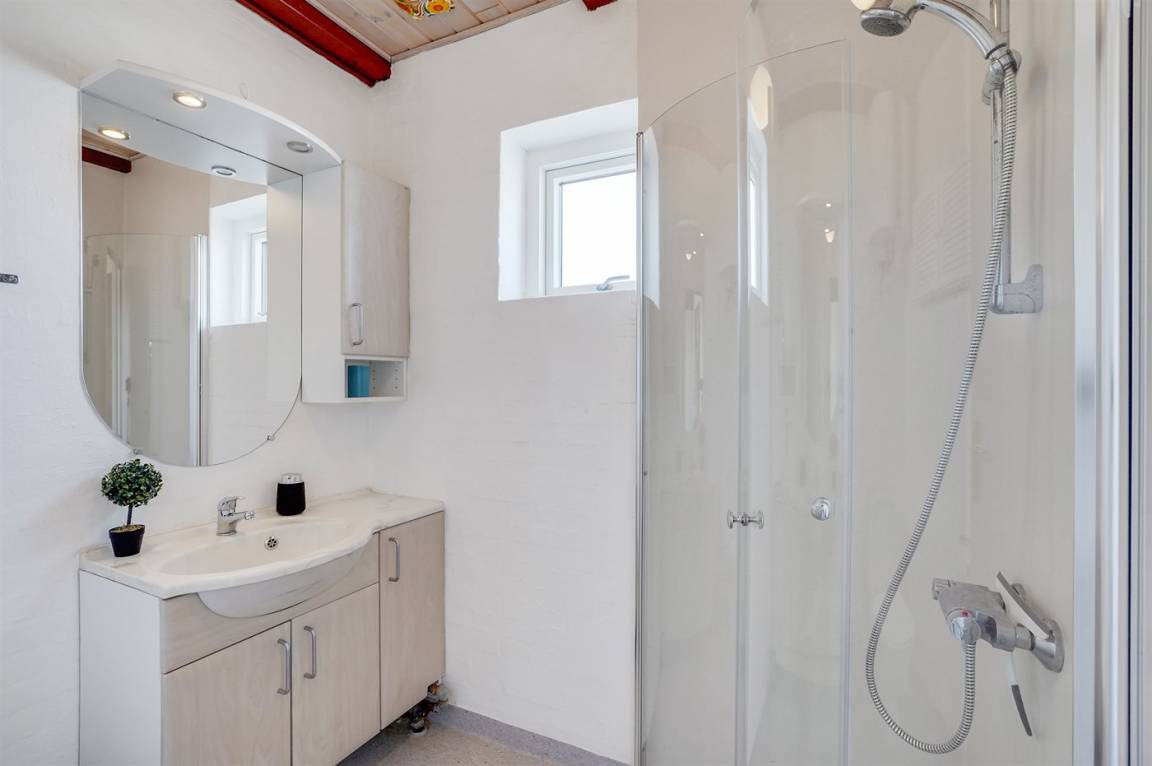 „The vacation at the holiday home: Vi havde valgt selv at gøre rent. Og vores grundighed gjorde, at vi kom steder hen hvor der ikke var gjort rent længe, før vi gjorde det. Feks støv/spindelvæv over hovedhøjde. Toilet var der slået et skår af og cisterne fejlede periodisk. Vand tryk i bruser var meget lavt. Da jeg gjorde kakkelovnen ren, virkede det som om at "loftet" i den var ved at falde af. Knive i køkken var enormt sløve, havde dog selv taget knive med pga mistanke om dette. Flisegulv i stue etage var svært at fornemme om det var rent pga slid og mange pletter fra maling. God beliggenhed i forhold til strand. Mangler evt udendørs tørre sted til våddragt er og lignende. Cleanliness: Har jeg gjort i foregående box“