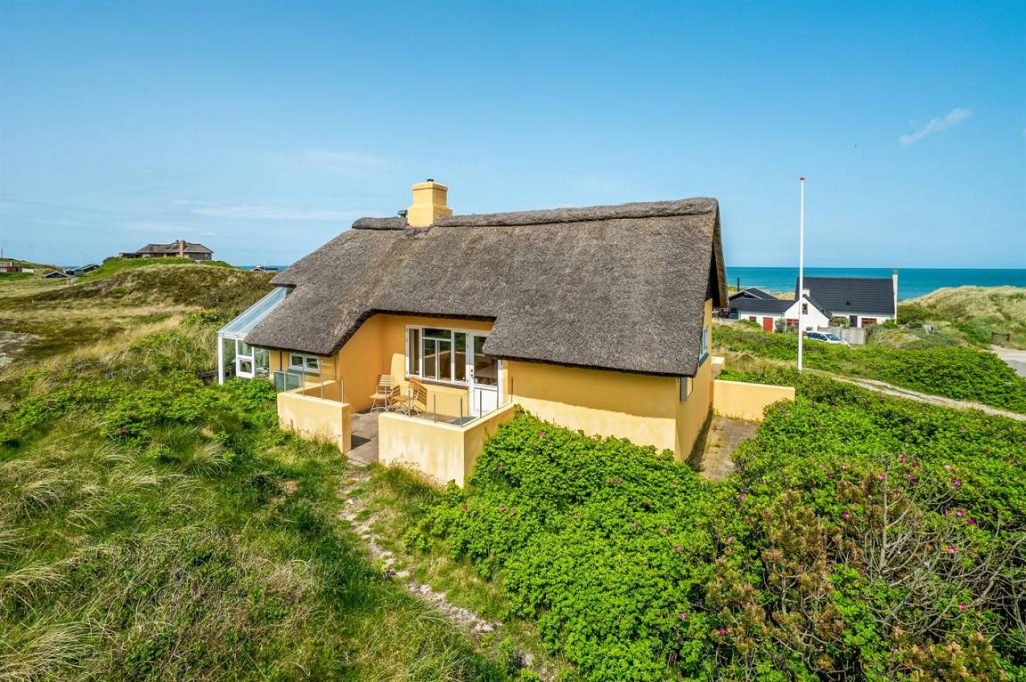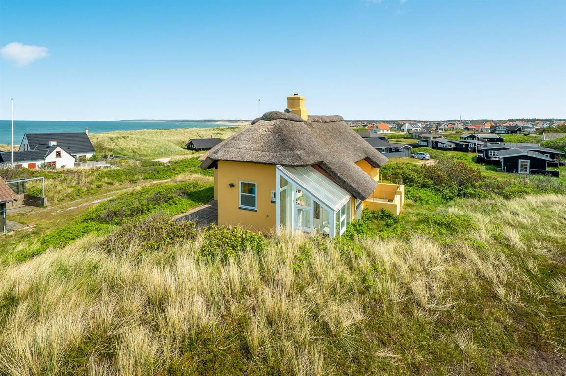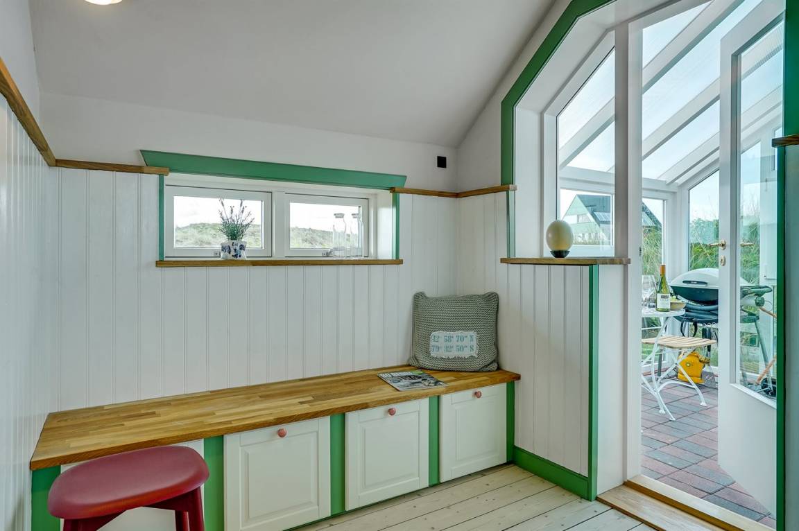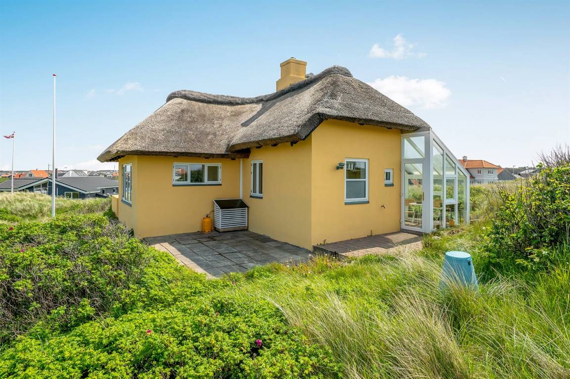 DraußenDie Ferienunterkunft liegt auf einem 1831 m² großen Dünengrundstück. Die Entfernung zum Meer beträgt 75 m. Die nächste Einkaufsmöglichkeit liegt 500 m entfernt. Es steht ein 20 m² Terrassenareal zur Verfügung. Zutritt zu einem Wintergarten. Parkplatz auf dem Grundstück.