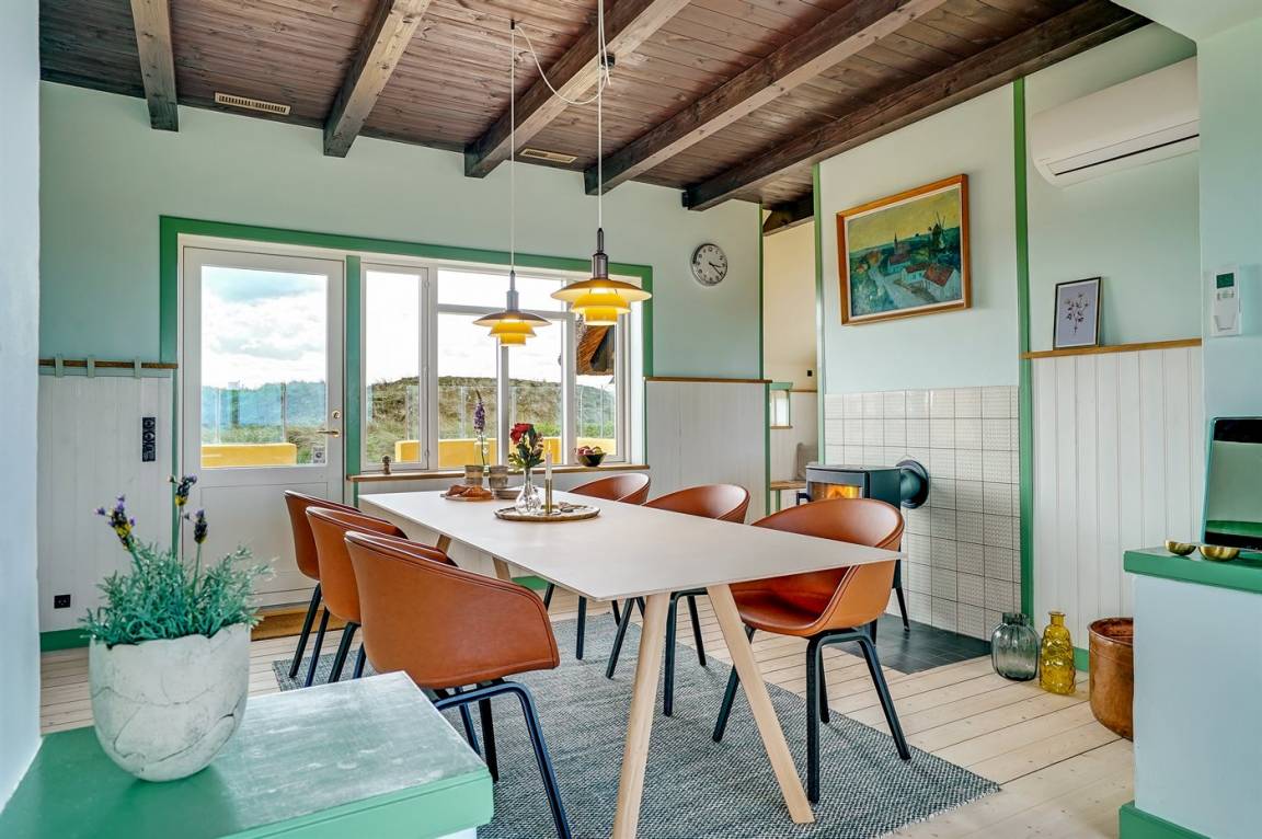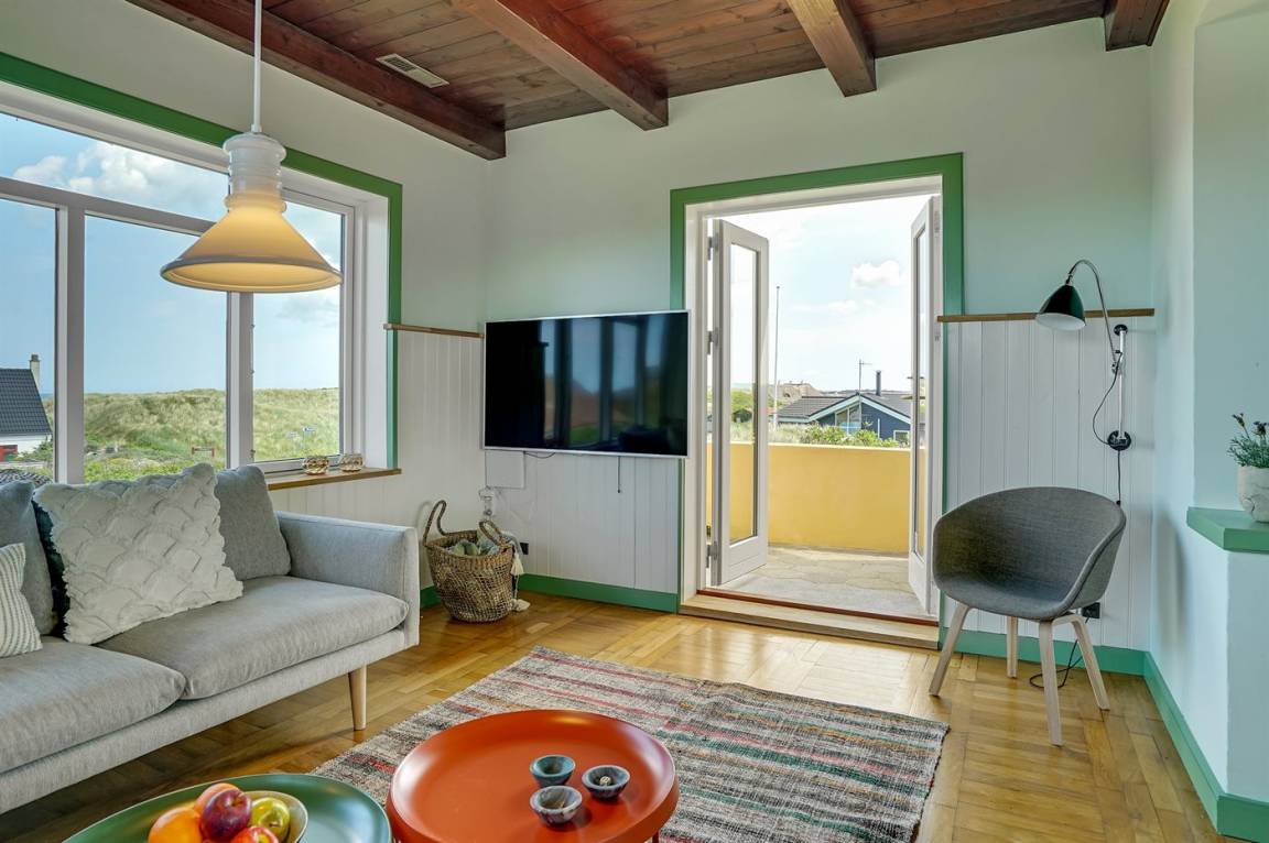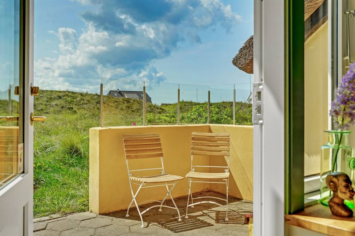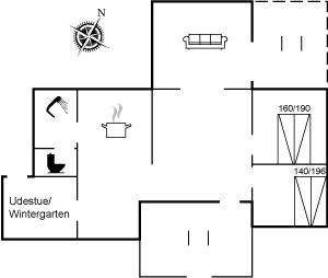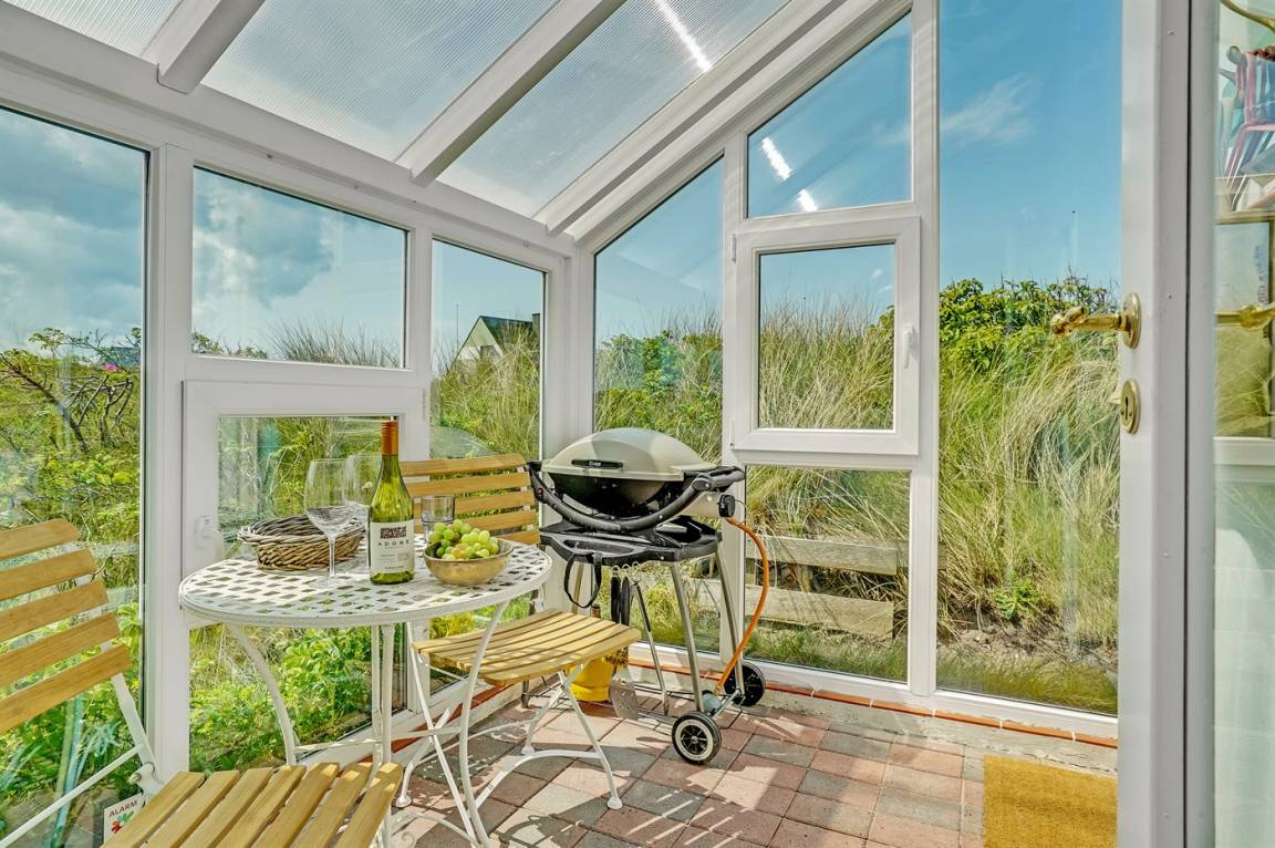 DraußenDie Ferienunterkunft liegt auf einem 1831 m² großen Dünengrundstück. Die Entfernung zum Meer beträgt 75 m. Die nächste Einkaufsmöglichkeit liegt 500 m entfernt. Es steht ein 20 m² Terrassenareal zur Verfügung. Zutritt zu einem Wintergarten. Parkplatz auf dem Grundstück.