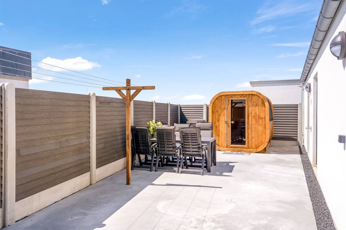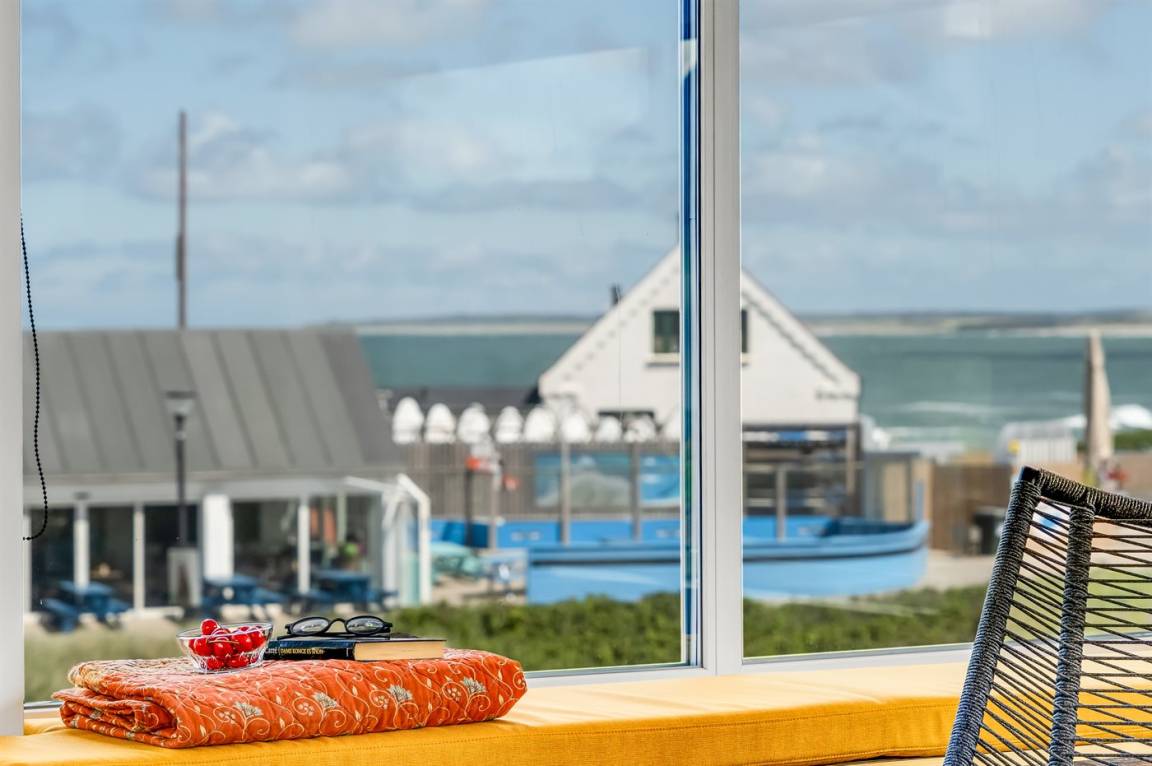 DraußenDie Ferienunterkunft liegt auf einem 800 m² großen Dünengrundstück. Die Entfernung zum Meer beträgt 75 m. Die nächste Einkaufsmöglichkeit liegt 1000 m entfernt. Es steht ein 75 m² Terrassenareal zur Verfügung. Davon insgesamt 60 m² geschlossene Terrasse. Außensauna. Außendusche. Es steht ein Grill zur Verfügung. Parkplatz auf dem Grundstück.