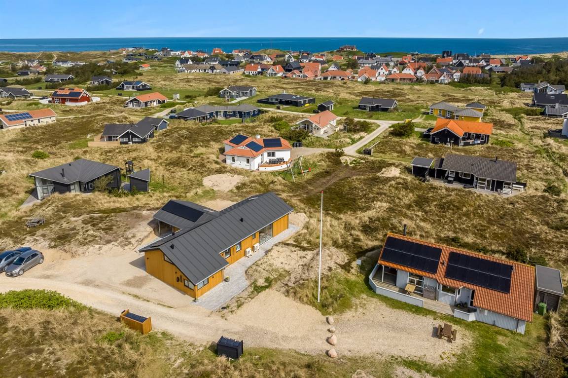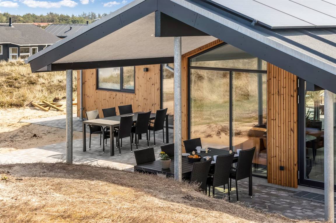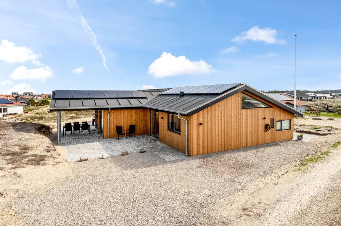 DraußenDie Ferienunterkunft liegt auf einem 1341 m² großen Dünengrundstück. Die Entfernung zum Meer beträgt 650 m. Die nächste Einkaufsmöglichkeit liegt 800 m entfernt. In einem Abstand von 3000 m gibt es einen Golfplatz. Es steht ein 100 m² Terrassenareal zur Verfügung. Außerdem gibt es 20 m² überdachte Terrasse. Schaukel. Sandkasten.Wippe. Außendusche. Es steht ein Grill zur Verfügung. Es ist ein Ladestecker für Elektroautos installiert. Ladestecker Typ 2. Mit einer Ladeleistung von 11 kW. Parkplatz auf dem Grundstück.