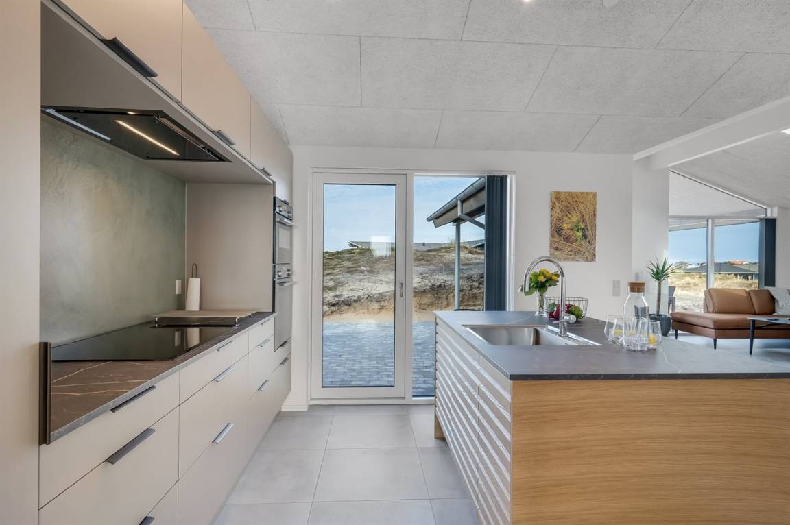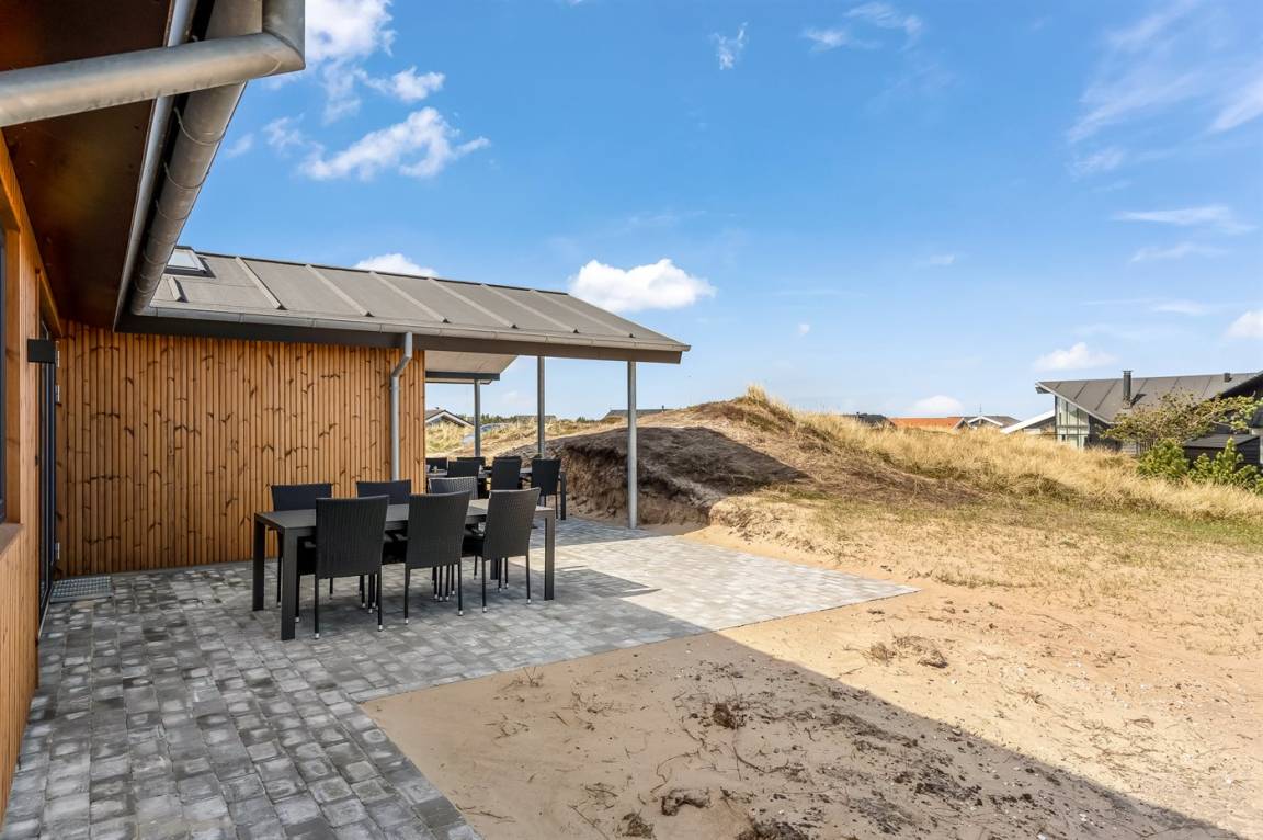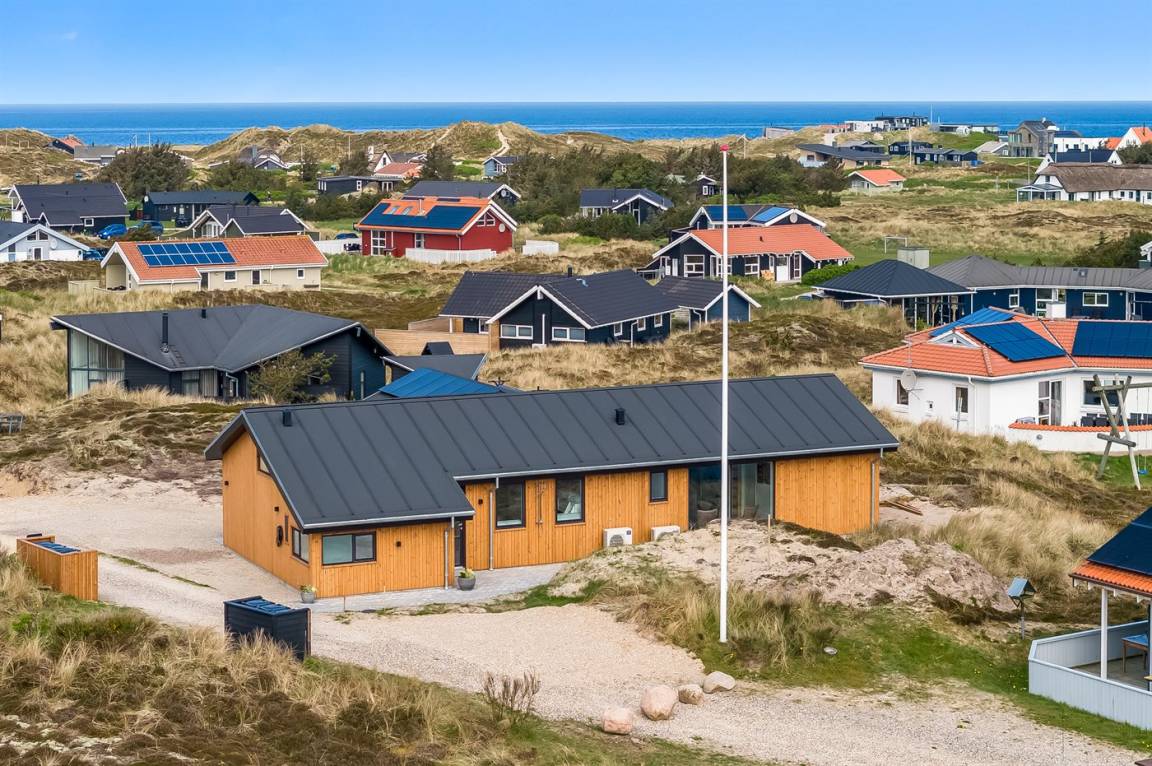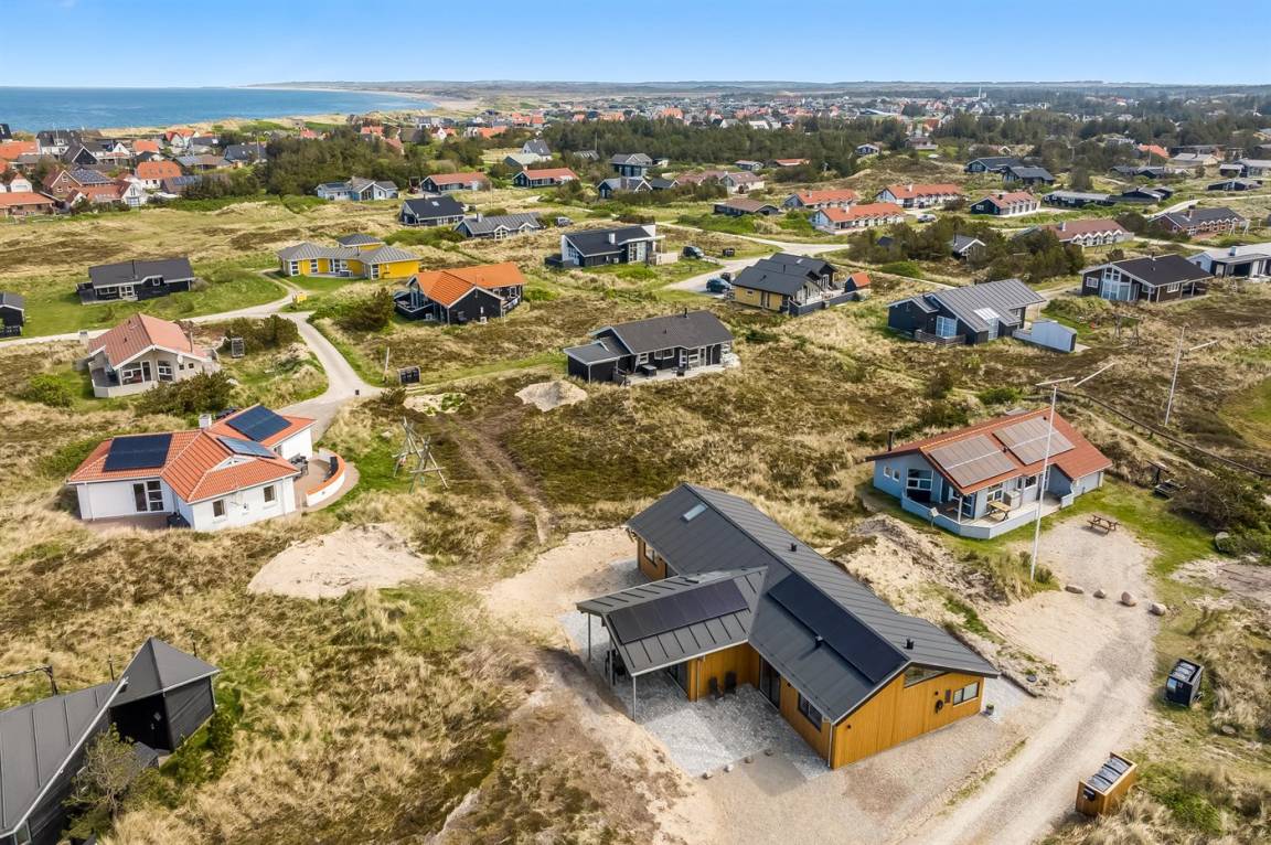DraußenDie Ferienunterkunft liegt auf einem 1341 m² großen Dünengrundstück. Die Entfernung zum Meer beträgt 650 m. Die nächste Einkaufsmöglichkeit liegt 800 m entfernt. In einem Abstand von 3000 m gibt es einen Golfplatz. Es steht ein 100 m² Terrassenareal zur Verfügung. Außerdem gibt es 20 m² überdachte Terrasse. Schaukel. Sandkasten.Wippe. Außendusche. Es steht ein Grill zur Verfügung. Es ist ein Ladestecker für Elektroautos installiert. Ladestecker Typ 2. Mit einer Ladeleistung von 11 kW. Parkplatz auf dem Grundstück.