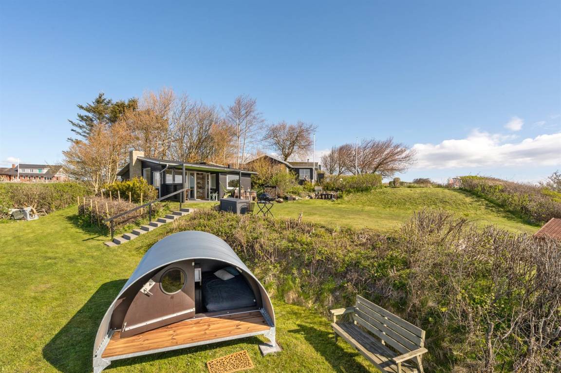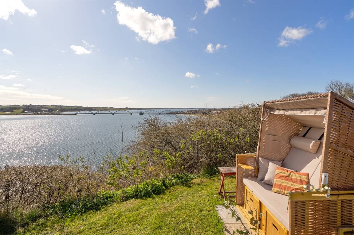 2. Eine gemütliche Zeit im Strandkorb vor dem Wind geschützt, aber dennoch nah am Rauschen des Wassers und mit einem wunderschönen Blick über den Limfjord.