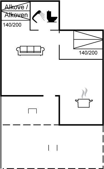 SchlafverhältnisseEs gibt einen Schlafraum. 2 Schlafplätze in einem Doppelbett.2 Schlafplätze im Alkoven. 2 von diesen Schlafplätzen befinden sich im Wohnzimmer.