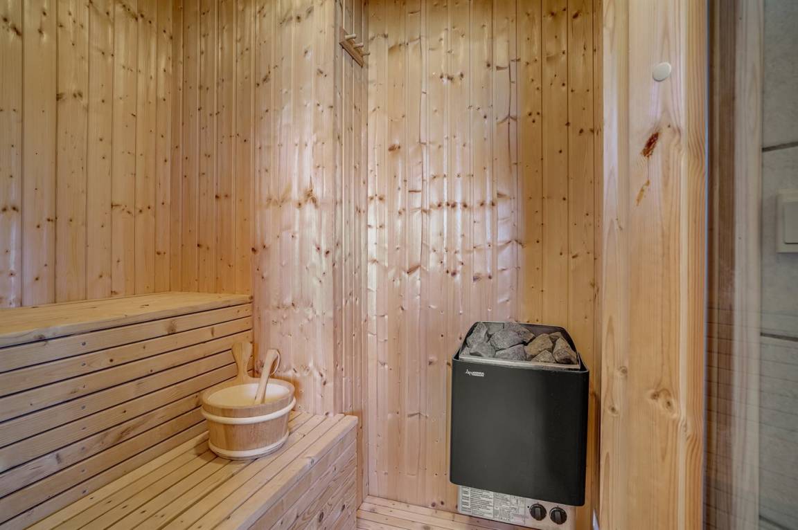 WC und BadEs gibt 2 Badezimmer mit Duschnische und 2 Toiletten. Fußbodenheizung in 2 Badezimmern. Es steht eine Sauna zur Verfügung in der Sie sich so richtig entspannen können.